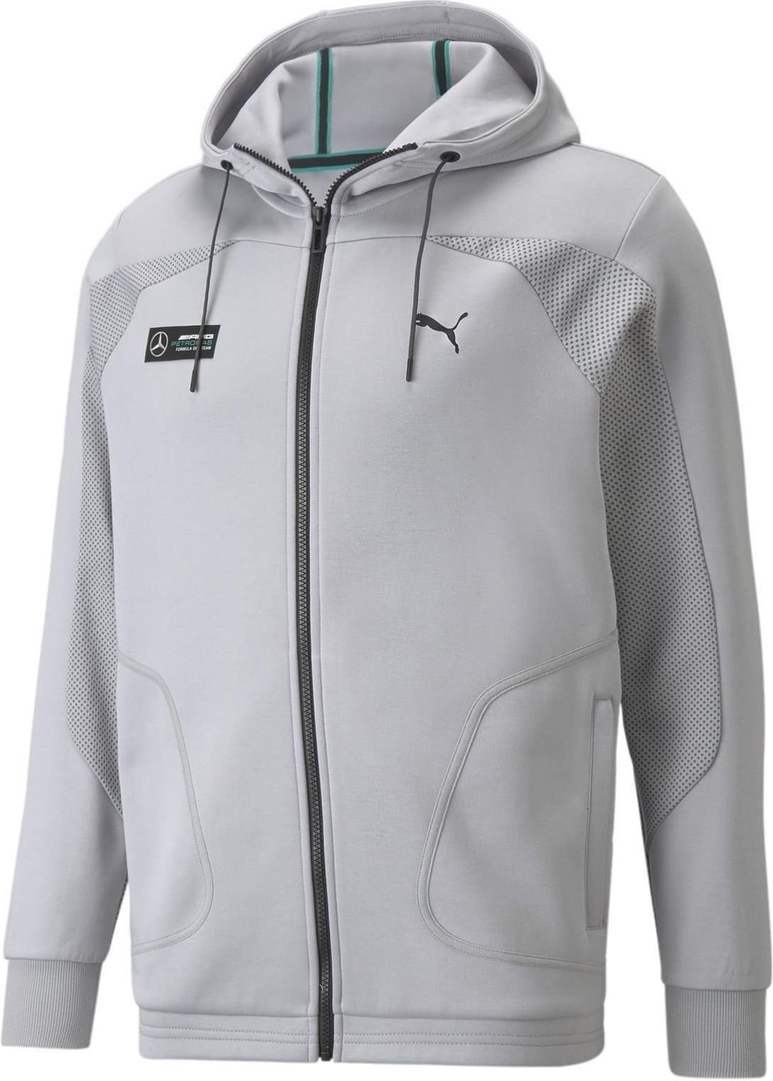 Bluza z kapturem Puma MAPF1 Bawełniana bluza z kapturem Puma z kolekcji Motorsport. Regularny fason zapewnia wysoki komfort użytkowania.Widoczne logo stanowi wizytkówkę każdego fana marki Mercedes. Wysoka jakość materiału sprawia, że będziesz cieszyć się bluzą przez długi czas, a oryginalne logo spowoduje, że nie przejdziesz nigdzie niezauważony!. Regularny fason. 77% bawełna, 23% poliester. Akcenty inspirowane sportami motorowymi. Puma Motorsport to kolekcja stworzona dla miłośników szybkich aut. Z tej współpracy pojawiły się produkty idealne dla streetwearowców oraz fanów motoryzacji. Kolekcja obejmuje szeroki wybór codziennej odzieży takiej jak dresy, buty czy kurtki. Niepowstrzymana energia i nieustraszony design. Właśnie to symbolizuje kolekcja motosportową PUMA. Bawełna to podstawowe włókno pochodzenia roślinnego, które jest używane w produkcji odzieży. Główne zalety bawełny to idealne wchłanianie wilgoci z otoczenia, dodatkowo jest bardzo odporna na rozciąganie oraz przyjazna dla osób z alergią – nie wykazuje zdolności uczulających. Jest również bardzo miła w dotyku dlatego można ubierać ją na nagie ciało, w przeciwieństwo do np. wełny, nie daje poczucia ‘gryzienia’.
