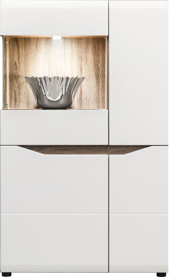 Witryna szklana biała połysk Kredens LIONEL LI5 Witryna LIONEL LI5 to starannie wykonana funkcjonalna ozdoba uzupełniająca wystrój nowoczesnego salonu czy pokoju dziennego. Wnętrze pozwoli na wygodne przechowywanie zastawy stołowej lub innych przydatnych przedmiotów domowego użytku. Do …
