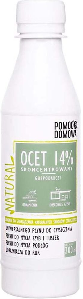 Ocet gospodarczy 14% NATURAL 200 mlOcet 14% Skoncentrowany Gospodarczy to najbardziej wszechstronny, naturalny środek czyszczący, który powinien znaleźć się w każdym domu. Dzięki zwiększonemu stężeniu nawet przy codziennym użyciu wystarczy na dłużej.
