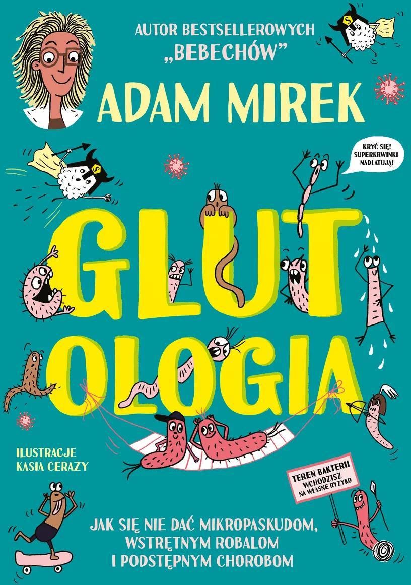 Nowa książka Adama Mirka, autora bestsellerowych Bebchów, książki, którą uwielbiają dzieci w całej Polsce. Glutologia to ponad 500 stron nowych ciekawostek i faktów o mikropaskudach, wstrętnych robalach i podstępnych chorobach. Założę się, że wiesz, jak to jest chorować. Z nosa ciągną się gluty, twoje czoło jest gorące jak piekarnik, a ty nie masz siły nawet na ulubiony serial czy ukochaną książkę. Co tu się dzieje?! To twoje ciało broni się przed najazdem szpiegów i wysłanników chorób: wrogich wirusów i bakterii. Ale nic się nie martw! Twój mózg już wysłał na odsiecz armię odważnych superkrwinek. A gdy one same nie dadzą rady, wtedy do walki wkroczą lekarze i farmaceuci. Wyrusz w podróż do tajemniczego świata glutologii. Z książki dowiesz się między innymi: skąd tabletka wie, gdzie boli, dlaczego niektórzy po wypiciu szklanki mleka pędzą do toalety, kim jest cichy złodziej kości, dlaczego wirus jest wredniejszy niż bakteria oraz jak nie dać się chorobom, wstrętnym robalom i mikropaskudom. Niech zdrowie będzie z tobą! Adam Mirek trochę szalony i supermądry naukowiec. Młodzi kochają go za to, jak opowiada o nauce w mediach społecznościowych, a dorośli pewnie bardziej docenią fakt, że zrobił doktorat w dwóch krajach! Autor bestsellerowej książki Bebechy, czyli ciało człowieka pod lupą, która zdobyła tytuł Mądrej Książki Roku 2023 dla Dzieci i Książki Roku 2023 w kategorii literatury dziecięcej w plebiscycie portalu Lubimyczytać.pl. Spis treści: Okładka Karta tytułowa Rozdział pierwszy. Obóz Glutologiczny medycyna glutologia farmacja Ze słownika glutologa Rozdział drugi. Villa Vitalis temperatura ciała ciśnienie tętnicze diagnostyka Psychotest na glutologa Rozdział trzeci. Kolekcja medycznych dziwactw Renaty Rentgen amputacja mikroskop preparatów biologicznych księgi starych mędrców ku przyszłości hirudoterapia Zbadaj swoje tętno Rozdział czwarty. Co w bebechach piszczy? diagnostyka ciąg dalszy stetoskop badanie serca badanie dróg oddechowych badanie brzucha badanie jamy ustnej badanie układu nerwowego badanie krwi i inne badania laboratoryjne badanie wzroku badanie słuchu Sekrety krwi karty supermocy Rozdział piąty. Wyjątkowe wypieki Pankracego Kukułki omdlenie igła logopeda laktoza gluten alergia Co robić przy omdleniu? Rozdział szósty. Zoo Mikrobów szczepienia i szczepionki koronawirus sars-cov-2 wykurzanie zarazków z organizmu paciorkowce streptococcus pyogenes wirusy egzotyczne czym się różnią bakterie i wirusy ospa wietrzna ospa prawdziwa rinowirusy, adenowirusy, ortomyksowirusy odra, świnka i różyczka gruźlica, trąd i dżuma Największe epidemie w historii Rozdział siódmy. Nocna wyprawa problemy ze snem i śpiączka hipokamp mechanizmy obronne roślin siniaki adrenalina Co zrobić, kiedy nie można zasnąć, bo głowa nie przestaje myśleć? Rozdział ósmy. Prześwietlone tajemnice opuchlizna staw skokowy i urazy prześwietlenie rentgenowskie tomografia usg Lista części wymiennych, czyli czy mogę coś ze swojego ciała oddać innym? Rozdział dziewiąty. Skąd tabletka wie, gdzie boli? różne formy leków skąd tabletka wie, gdzie boli lek a suplement astma antybiotyki rośliny lecznicze kroplówka zastrzyki Pytania z Kuferka Ciekawości Rozdział dziesiąty. Bitwa z mieszkańcami Hotelu Parasite fobie repelenty pszczoły, osy i szerszenie owsiki, tasiemiec i glista ludzka mycie rąk kleszcze, wszy, pchły i pluskwy pająki trzmiel i mucha komar Pytania z Kuferka Ciekawości Rozdział jedenasty. Do wesela się zagoi! opatrywanie ran drzazga w naskórku blizny ugryzienie w język guz kolka Jak natura odbudowuje ciało Rozdział dwunasty. Grzyby, grzybice i inne leśne niespodzianki wycieczka do lasu grzyby pleśń i drożdże grzybica i łupież nowotwór wścieklizna próchnica medytacji Domowa plantacja pleśni Rozdział trzynasty. W zdrowym ciele zdrowy brzuch (i głowa) ból biegunka i zaparcia składniki odżywcze osiem filarow zdrowia Idealna olimpijska owsianka, bombowo-witaminowy koktajl, kulki mocy Rozdział czternasty. Nieładnie tak podsłuchiwać! zawał mięśnia sercowego nadciśnienie tętnicze cukrzyca wylew krwi do mózgu miażdżyca wypadający dysk i reumatyzm osteoporoza SOR choroba Alzheimera geriatra śmiech R.A.T.U.J. pierwsza pomoc Rozdział piętnasty. Lot balonem i niewidzialne choroby zakwasy odrętwienie akrofobia jak daleko sięga wzrok niewidzialne choroby tajemnica lekarska otyłość 5 niesamowicie rzadkich chorób Rozdział szesnasty. Oczko basenowe dolegliwości wewnątrz ludzkiego oka zaćma daltonizm stożek rogówki Zbadaj swój wzrok Rozdział siedemnasty. Mistrzowie Glutologii świerzb zez modzele, odciski i liszaj jaskra wychłodzenie i odmrożenia oparzenia burza Zbadaj swój wzrok tablica Snellena Karta redakcyjna