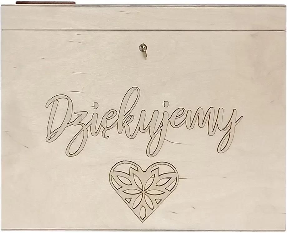 Pudełko na ślub - skrzynka na koperty z kluczykiem. Wymiary skrzynki: 30 x 20 x 23.5 cm.