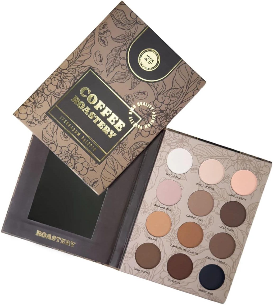 Mexmo - Coffee Roastery - Eyeshadow Palette - Paleta 12 cieni do powiek Coffee Roastery - Eyeshadow Palette marki Mexmo. Paleta cieni do powiek. Składa się z 12 prasowanych pudrów o niesamowitej pigmentacji oraz klasycznym matowym wykończeniu. Posiada harmonijnie dobraną paletę barw, będącą wariacją różnych odcieni brązów oraz beży. To idealne zestawienie bazowych kolorów, dzięki czemu cienie do powiek idealnie sprawdzą się podczas wykonywania wielu różnych makijaży na co dzień oraz jako podstawa do makijaży imprezowych i na większe wyjścia. Kolory niezwykle łatwo się aplikują oraz bezproblemowo blendują z innymi odcieniami, tworząc bardzo naturalne przejścia. Mexmo paleta idealnie sprawdzi się zarówno dla osób początkujących, jak i dla profesjonalistów w sztuce wykonywania makijażu. Cienie zostały umieszczone w tekturowej palecie z lusterkiem pod pokrywą zamykającą. Paleta cieni. Ma matowe wykończenie. Pomoże stworzyć wiele makijaży. Posiada lusterko pod pokrywą zamykającą. POSZCZEGÓLNE ODCIENIE:- Latte Foam - śmietankowo biały, - White Mocha - beżowy z żółtymi tonami, - Vanilla Latte - cielisto-waniliowy, - Almond Milk - beżowo-różowy, - Cappuccino - jasny brązowy, - Cold Brew - chłodny, ciemny brąz, - Frape - ciemny piaskowy, - Caramel Macchiato - karmelowy, - Hazelnut Roast - chłodny brązowy, - Irish Coffee - średni brąz, - Espresso - ciemny, ciepły brąz, - Americano - czarny. Atrybuty Waga netto - 12 x 1,5 g PAO termin trwałości - 12M