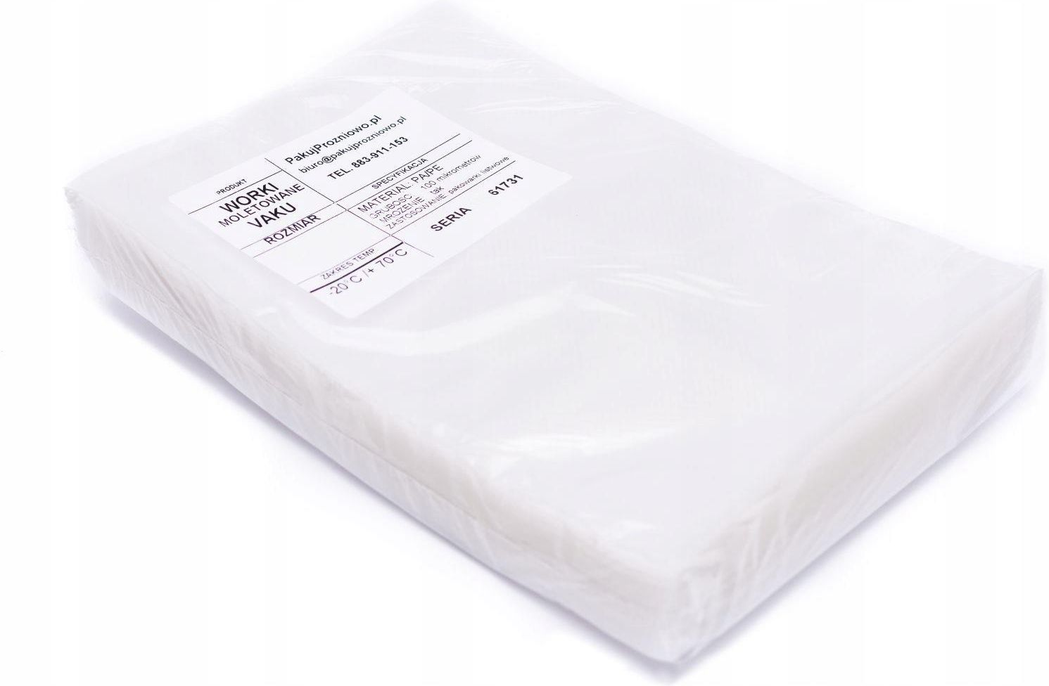 NAJWYŻSZEJ JAKOŚCI MOLETOWANE WORECZKI DO PAKOWANIA PRÓŻNIOWEGO RENOMOWANEJ FIRMY PROFICOOK ZESTAW : 50 szt Rozm. 28 x 40 cm Próżniowe pakowanie pozwala zachować świeżość żywności nawet do 5 razy dłużej niż przy tradycyjnym przechowywaniu, zapobiega utracie witamin i składników odżywczych. worki o …
