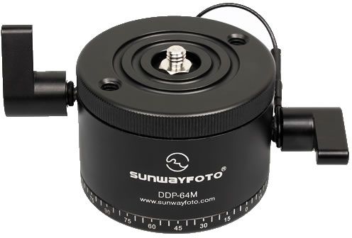 Sunwayfoto DDP-64M Indexing Rotator Sunwayfoto DDP-64M Indexing Rotator to obrotowa głowica, która pozwala na panoramowanie z precyzyjnymi przyrostami stopni. Umożliwia to zrobienie serii zdjęć – w odstępach zatrzymania od 5 do 90 – które później połączysz w panoramiczne arcydzieło (możliwe, że obejmuje to również robienie zdjęć w wysokim zakresie dynamicznym). Wyjmij i włóż dołączony klucz, aby łatwo zmienić interwał zapadki (zatrzymania). DDP-64M posiada niezależne zamki dla górnej platformy i podstawy garnka. Możesz również użyć tego rotatora indeksującego jako tradycyjnej podstawy do panoramowania. Dzięki udźwigowi 22 funtów, DDP-64M obsługuje większość kombinacji aparat/obiektyw.