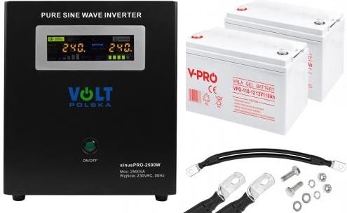Zasilacz Volt Sinus Pro 2500W 2500VA/1800W + 2x akumulator żelowy Volt GEL VPRO Premium 12V 110A Racibórz