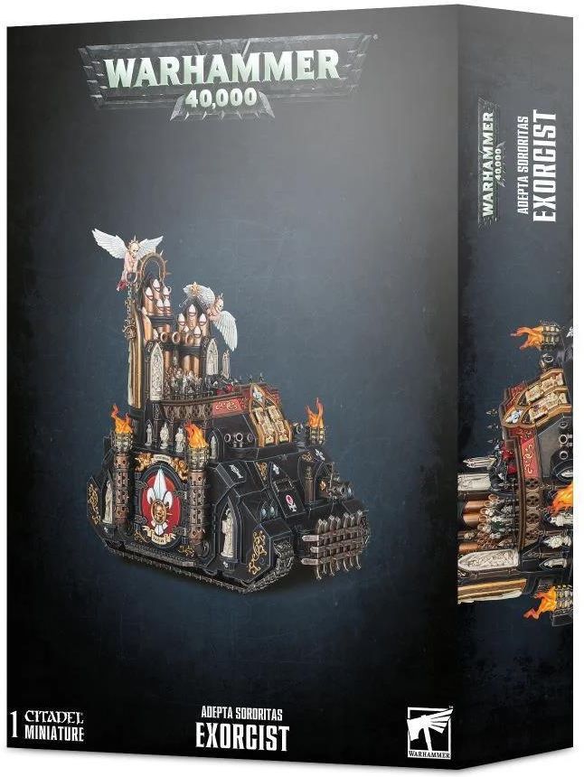 The Exorcist is a weapon uniquely representative of the ways in which the Adepta Sororitas pair shows of devotion to the Emperor with the castigation of his heretical enemies. It is a rolling shrine to the magnificence of the Master of Mankind, a breathtakingly ornate piece of craftsmanship that grinds into battle projecting inspirational hymnals to the Emperor’s glory. These carry across the field of battle and swell all good Imperial hearts with faith and pride. When entire squadrons of these vehicles advance in armoured spearheads, their combined symphonic emanations transform even the most mud-and-blood-drenched field of war into a veritable cathedrum. Beaten-down warriors feel fresh fire in their hearts as they hear the battle-canticles soar. Those outnumbered or stricken with fear find fresh courage and the strength to hold their ground and keep fighting. And then the Exorcists’ first rocket salvoes scream down into the enemy’s midst, and the entire face of the battle changes. The Exorcist is equipped with a hull-mounted heavy bolter and a choice of Exorcist missile launcher or Exorcist conflagration rockets as its primary armament. The vehicle come equipped with smoke launchers and can also be upgraded with an additional weapon in the form of a hunter-killer missile. The kit comprises 99 components and includes all of the Exorcist's weapons and wargear options. The model comes supplied with an Adepta Sororitas Transfer Sheet.