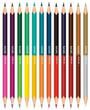 komplet kolorowych kredek dwustronnych - 12 kredek, 24 kolory drewniane, lakierowane miękka kreska niełamliwy grafit grubość grafitu: 3 mm