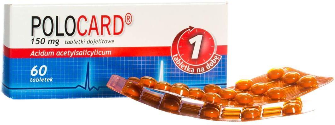 Nazwa: Polocard Postać: tabl.powl.dojel. Dawka: 0,15 g Opakowanie: 60 tabl. (6 blist.po 10 szt.) Skład: 1 tabletka dojelitowa zawiera:75 mg kwasu acetylosalicylowego (Acidum acetylsalicylicum), lub 1 tabletka dojelitowa zawiera: 150 mg kwasu acetylosalicylowego (Acidum acetylsalicylicum). …