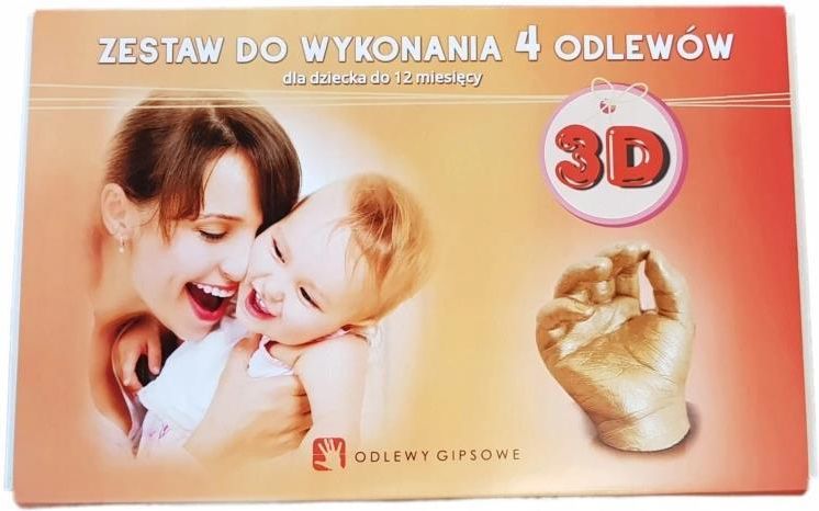 ZESTAW DO WYKONANIA 4 ODLEWÓW 3D Oferujemy państwu zestawy do samodzielnego wykonania bardzo realistycznych odlewów gipsowych. Zestaw umożliwia wykonanie 4 odlewów rączki/nóżki dziecka w wieku do około 12 miesięcy (granica wieku jest dość umowna - można również wykonywać odlewy trochę starszych …