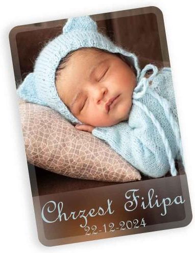Magnes Prostokątny 1szt szerokość 10cm wysokość 7cm, zaokrąglone rogi, magnes może być wykonany ze zdjęcia sesyjnego lub według wzoru z galerii skład: laminat, warstwa foto, warstwa magnetyczna 0,7mm Wydruki wykonujemy na profesjonalnych urządzeniach z wykorzystaniem papieru fotograficznego oraz papieru satynowanego dedykowanego do zdjęć i grafik w wysokiej jakości. Dzięki wykorzystaniu oryginalnych tuszy ostateczny produkt posiada żywe kolory , a nadruk jest trwały, wodoodporny . Woreczek celofanowy i wstążeczka gratis do każdego magnesu kolory wstążek do wyboru: złoty, biały, różowy, niebieski, czerwony Personalizacja wzoru Personalizacja wybranego z aukcji wzoru polega na zmianie: imienia daty uroczystości dostosowaniu zdjęcia do wzoru. dodatkowe zmiany charakterystyczne dla zamawianej okoliczności jak wiek solenizanta itp. o ile wzór zawiera takie dane i można je zastąpić. Uwaga: do zamówień poniżej 8 sztuk nie drukujemy zdjęcia, do wyboru pozostają wzory bez zdjęcia Jeśli wybierasz wzór przedstawiony po prawej stronie, zdjęcie i napis wyślij mailem po zakupie. Realizacja personalizacji rozpoczyna się po wprowadzeniu wymaganych danych przez zamawiającego w formularzu dla grafika, wysłanym przez nas na adres email zarejestrowany w portalu kilka minut po zakończonym zakupie. Wiadomość zawiera link do strony stworzonej indywidualnie dla zamówienia. Bez kompletu wymaganych do personalizacji danych nie ma możliwości wygenerowania wizualizacji.
