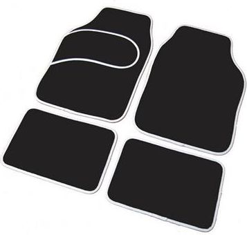 Dywaniki materiałowe Dywaniki służą do ochrony wykładziny na podłodze samochodu przed trudnymi do usunięcia zabrudzeniami.Zanieczyszczone dywaniki można z łatwością wyjąć z wnętrza samochodu i oczyścić.Wymiary: przód 65x44cm tył 28x42cm Wersja: czarne z lamówką szarą