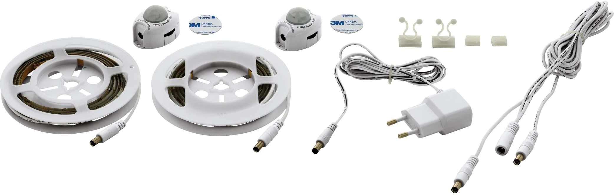 Taśma świetlna LED jest wykonana z wysokiej jakości tworzywa sztucznego w kolorze białym i łatwa do zamocowania na spodzie za pomocą istniejącej taśmy klejącej. Całkowita długość 2 x 120 cm można łatwo skrócić w przewidzianych miejscach Zamontowane na stałe energooszczędne diody LED zapewniają przyjemne ciepłe białe światło (po 3,6 W, 250 lumenów, 3300 kelwinów) Zestaw taśm LED jest optymalny do pośredniego oświetlenia różnych przedmiotów mieszkalnych. Szczególnie pod łóżkiem okazuje się praktyczne i dekoracyjne światło nocne, które po aktywacji czujnika w ciemności pozostaje włączone w przedziale od 30 sekund do 10 minut (w zależności od ustawienia) Oszczędność energii do 80% w porównaniu z tradycyjnymi żarówkami. Lampa LED chroni Twój budżet i środowisko Wymiary: Długość paska: 2 x 120 cm, szerokość: 0,8 cm, wysokość: 0,2 cm W przypadku tego produktu chodzi o produkt otoczony. Produkty otoczone to lampy, które można zdemontować w celu oddzielnego sprawdzenia zawartego w zestawie źródła światła