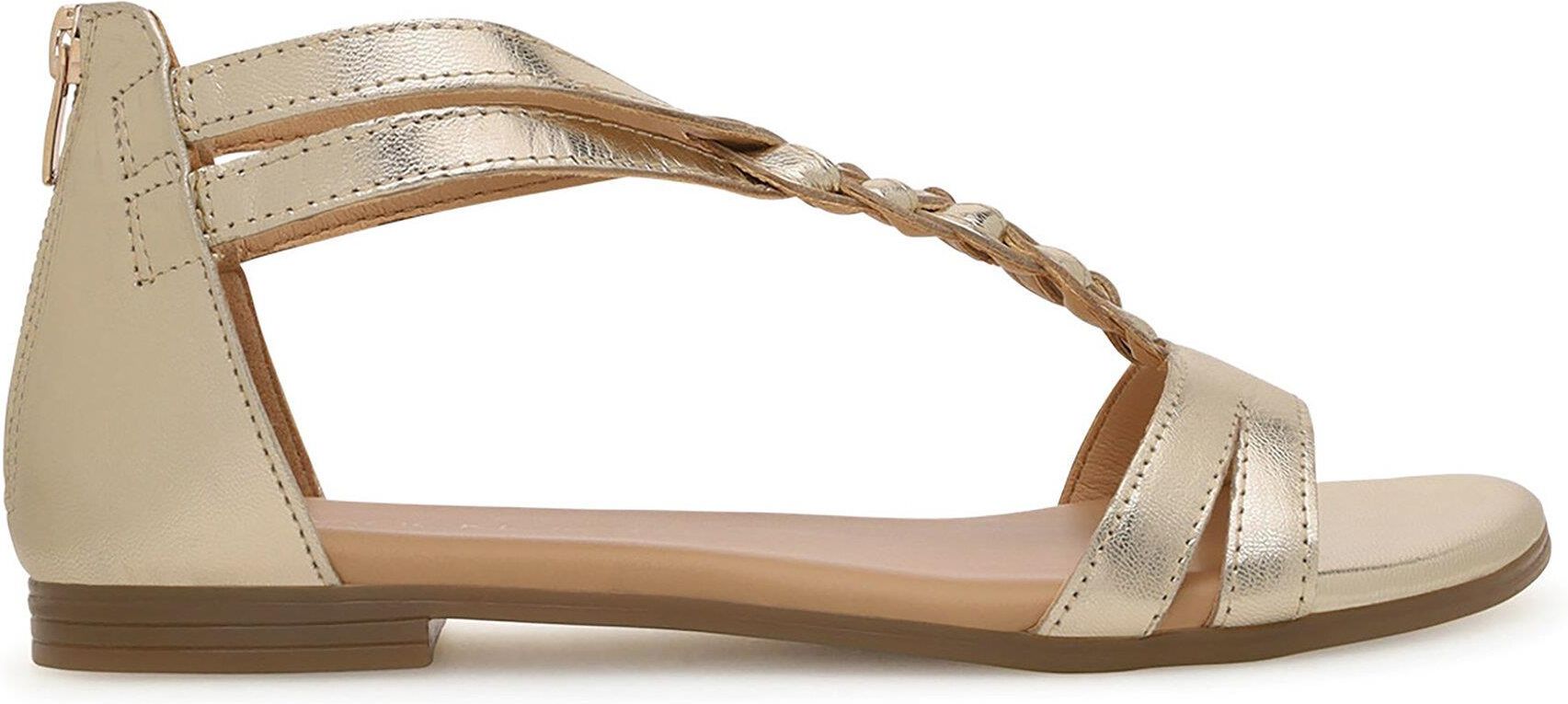Lasocki Arena RST Arena 80 Złoty Sandały damskie Lasocki Arena RST Arena 80 Złoty to idealny wybór na wiosenne i letnie dni. Dzięki swojemu złotemu kolorowi oraz eleganckiemu wykończeniu, te sandały łączą w sobie styl i komfort, co czyni je doskonałym uzupełnieniem każdej letniej stylizacji. Model ten został zaprojektowany z myślą o kobietach, które pragną czuć się modnie, a jednocześnie wygodnie. Typ i materiał wykonania Model Arena RST wyróżnia się wysoką jakością wykonania. Zastosowanie skóry licowej oraz skóry naturalnej zapewnia trwałość i elegancję, co sprawia, że sandały te doskonale sprawdzą się zarówno w codziennych, jak i bardziej formalnych stylizacjach. Klasyczny, gładki wzór oraz otwarty noseczek nadają im lekkości, a płaski obcas zapewnia komfort noszenia przez cały dzień. Konstrukcja i podeszwa Sandały Arena RST charakteryzują się starannie przemyślaną konstrukcją, która zapewnia wygodę noszenia przez cały dzień. Płaska podeszwa o wysokości 2 cm to doskonałe rozwiązanie dla kobiet poszukujących komfortu bez rezygnacji z estetyki. Dzięki zastosowaniu materiałów wysokiej jakości, ten model oferuje odpowiednie wsparcie dla stóp, co jest niezwykle istotne podczas dłuższego chodzenia. Warto zwrócić uwagę na antypoślizgową charakterystykę podeszwy, która zapewnia stabilność na różnych nawierzchniach, co czyni je odpowiednim wyborem na letnie przygody. Rodzaj zapięcia Sandały Arena RST wyposażone są w praktyczne zapięcie na zamek. Takie rozwiązanie nie tylko ułatwia szybkie zakładanie i zdejmowanie obuwia, ale także dodaje im nowoczesnego charakteru. Dzięki zapięciu, można w łatwy sposób dopasować obuwie do indywidualnych potrzeb, co jest niezwykle ważne dla osób ceniących sobie wygodę i funkcjonalność. Wkładka wewnętrzna i komfort Komfort noszenia sandałów jest kwestią, na którą szczególnie warto zwrócić uwagę. W przypadku modeli marki Lasocki, wkładka wewnętrzna została zaprojektowana z myślą o użytkownikach, którzy spędzają w obuwiu długie godziny. Dzięki odpowiedniemu profilowaniu oraz zastosowaniu miękkich materiałów, wkładka zapewnia amortyzację, co przekłada się na przyjemne uczucie podczas chodzenia. Dodatkowo, właściwości antybakteryjne wewnętrznej wkładki skutkują większym komfortem, eliminując nieprzyjemne zapachy podczas letnich dni. Funkcje dodatkowe i wykończenia Złote sandały Lasocki to nie tylko stylowy wygląd, ale także szereg dodatkowych funkcji, które zwiększają ich funkcjonalność: oddychający materiał: skórzane wykończenie pozwala skórze oddychać, co jest niezwykle ważne w ciepłe dni, wodoodporność: dzięki odpowiednim materiałom, sandały są odporne na drobne zachlapania, co sprawia, że można je nosić w różnych warunkach, lekkość: konstrukcja obuwia sprawia, że jest ono bardzo lekkie, co zwiększa komfort noszenia, stylowe wykończenia: złoty kolor doda elegancji każdej stylizacji, a gładki wzór sprawia, że sandały są uniwersalne, ozdobne detale: drobne akcenty, takie jak klamry, podkreślają ich nowoczesny charakter. Sandały damskie Lasocki Arena RST to idealna propozycja dla kobiet, które cenią sobie styl, jakość oraz komfort. Dzięki różnorodności zastosowań, mogą być noszone na co dzień lub na bardziej eleganckie okazje, co sprawia, że stanowią doskonały wybór na nadchodzące letnie dni.