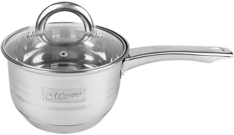 Rondel nierdzewny z pokrywką Maestro pojemność 2,1 l (12265) Rondel z pokrywką o pojemności 2,1 l i średnicy 16 cm marki Maestro MR3513-16S. Wykonany jest z wysokiej jakości stali nierdzewnej i posiada wielowarstwowe dno termo akumulacyjne. Rondel posiada wygodny uchwyt, nadaje się do wszystkich rodzajów kuchenek, w tym indukcyjnych. Łatwy w utrzymaniu czystości. Marzysz o szybkim i profesjonalnym przygotowaniu swoich potraw. Jeśli tak, to ten rondel idealnie się do tego nada. Przyrządzanie śniadania, obiadu czy kolacji stanie się czystą przyjemnością. Wzór:MR3513-16S Produkt 1 x rondel 1 x pokrywka Wymiary średnica 16 cm wysokość bez pokrywki 10,5 cm pojemność 2,1 l Materiał stal nierdzewna szkło Użytkowanie wszystkie rodzaje kuchenek w tym indukcyjnych można myć w zmywarce