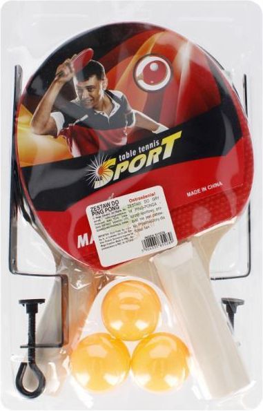 Przedmiotem sprzedaży jest: ZESTAW RAKIETKI DO PING PONGA + 3 PIŁKI 511574 MC Numer referencyjny: 156637 Opis przedmiotu: Podstawowy zestaw dwóch rakietek oraz trzech piłeczek do ping ponga Mega Creative dla osób zaczynających przygodę z tenisem stołowym. Paletki wykonane są z przyjaznej dla amatorów konstrukcją deski oraz kombinacją okładzin: czerwona z czopami do wewnątrz i czarna gładka na zewnątrz. Pozwoli to na dokładniejszy odbiór serwisu przeciwnika i grę z dużą kontrolą piłki. Do rakietek dołączone są trzy plastikowe, pomarańczowe piłeczki, skierowane głównie do graczy hobbystycznych, poszukujących łatwych do grania piłek, ich krągłość i wytrzymałość czyni je odpowiednimi dla początkujących zawodników. Zestaw został wykonany z drewna, gumy, siatki, metalu oraz plastiku. Gra w ping ponga rozwija sprawność fizyczną, koordynację ruchową i uczy dzieci zdrowej, sportowej rywalizacji. Komplet jest zapakowany w przezroczysty blister. Cechy zestawu: świetny zestaw dla osób zaczynających przygodę z tenisem stołowym, komplet został wykonany z drewna, gumy, siatki, metalu oraz plastiku, piłki są odpowiednie dla początkujących zawodników, rozwija zdolności motoryczne i koncentrację, uczy dzieci zdrowej, sportowej rywalizacji, idealny prezent dla dzieci od 14 lat. Zawartość zestawu: 2 rakietki do ping ponga, 3 pomarańczowe piłeczki, 1 siatka do gry. Wymiary opakowania: 18x4x28cm Kolory produktów mogą się różnić od tych zamieszczonych na zdjęciach w zależności od indywidualnych ustawień monitorów i innych wyświetlaczy. tokenserwisowy:#5904335855289#