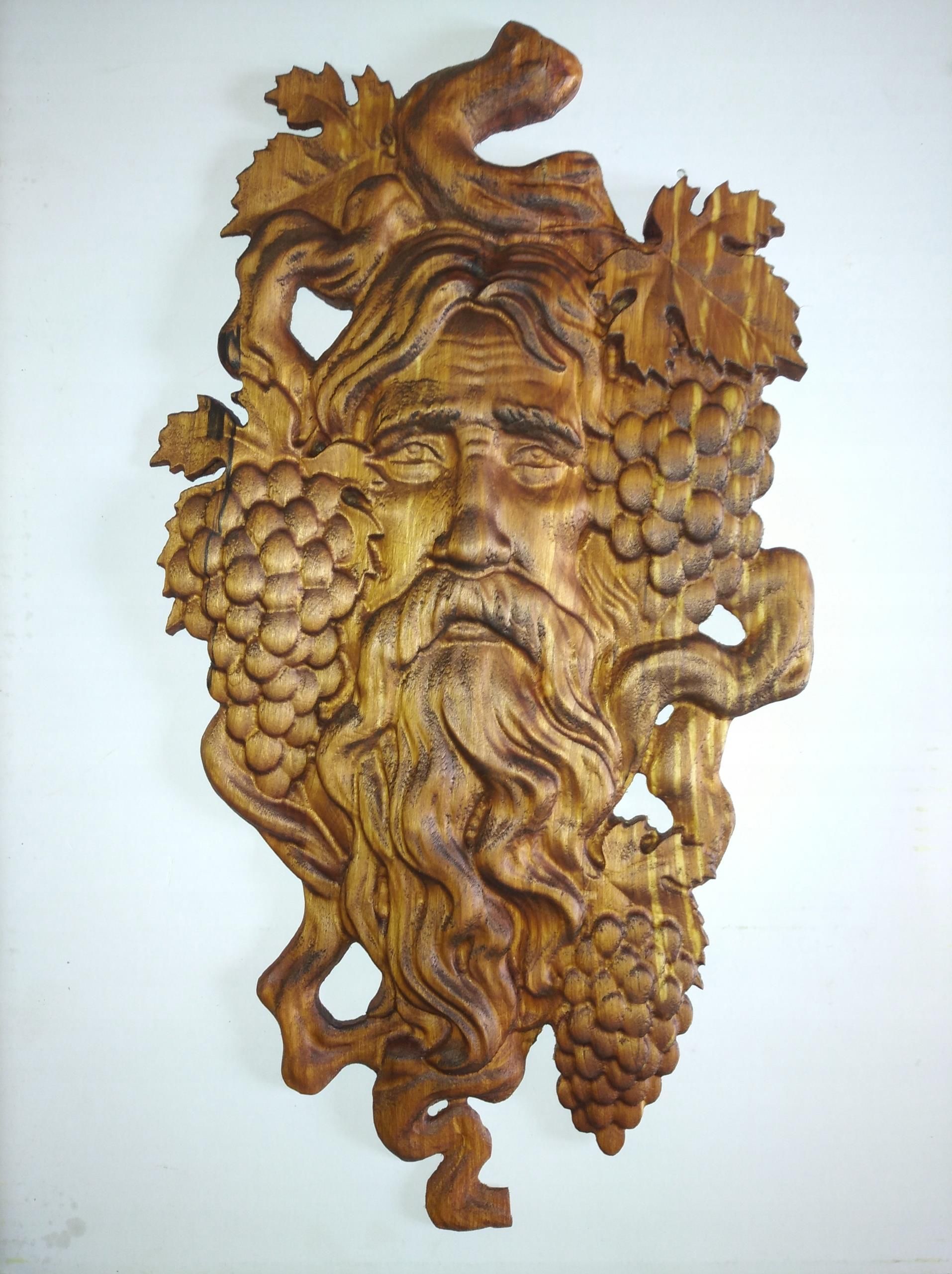 płaskorzeźba Dionizos wino winny duch drewno prezent Radlin