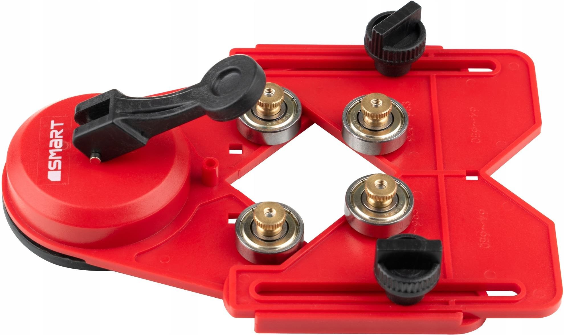 Prowadnica z przyssawką do otwornic diamentowych o średnicach 14-82mm firmy 365 SMART [SM-25-002]: dzięki mocowaniu na przyssawkę, prowadnica pozwala na wykonanie otworów na powierzchniach poziomych i pionowych dokładnie w wyznaczonym miejscu, prowadnica ułatwia wykonywanie czystych i precyzyjnych otworów w materiałach o gładkiej powierzchni w zakresie od 14mm do 82mm, wyposażona została w 4 łożyska o zmiennym położeniu, co pozwala na dokładne dopasowanie rozmiaru do używanej otwornicy, możliwość regulacji pozwala na błyskawiczną zmianę rozmiaru przy zmianie otwornicy, przyssawka pozwala na stabilne wiercenie, bez przesuwania prowadnicy nawet na powierzchniach pionowych, posiada złącze do doprowadzenia wody, które doprowadza ją bezpośrednio w miejsce wiercenia efektywnie chłodząc otwornicę.