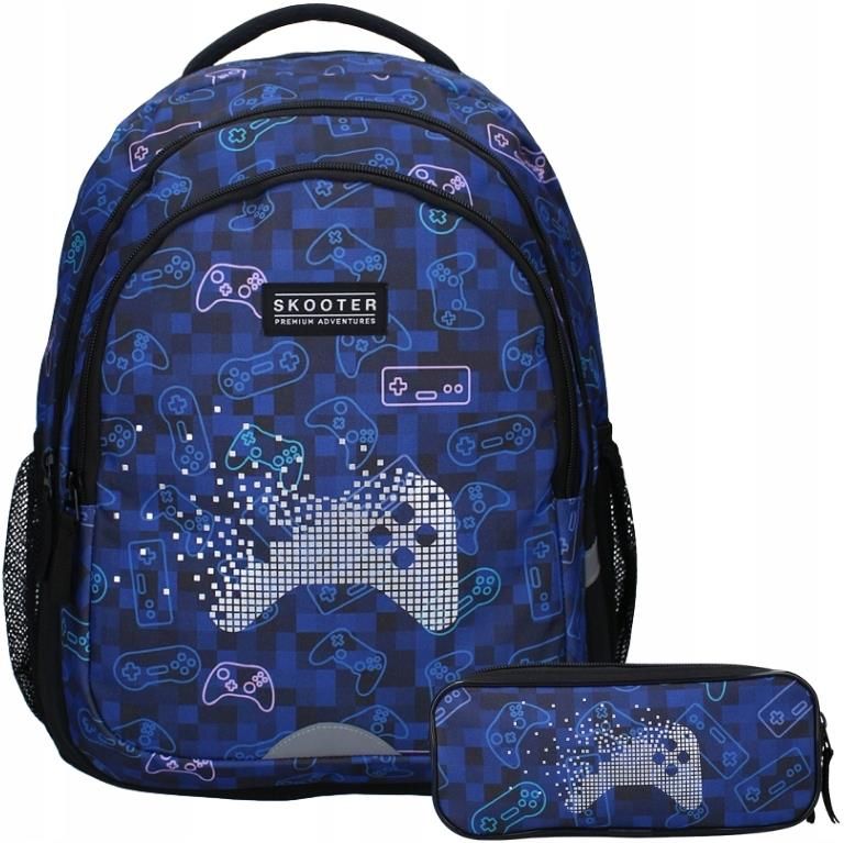 • Zestaw Vadobag Plecak Szkolny Młodzieżowy + Piórnik Dwukomorowy Bez Wyposażenia Skooter Winning Streak Niebieski
