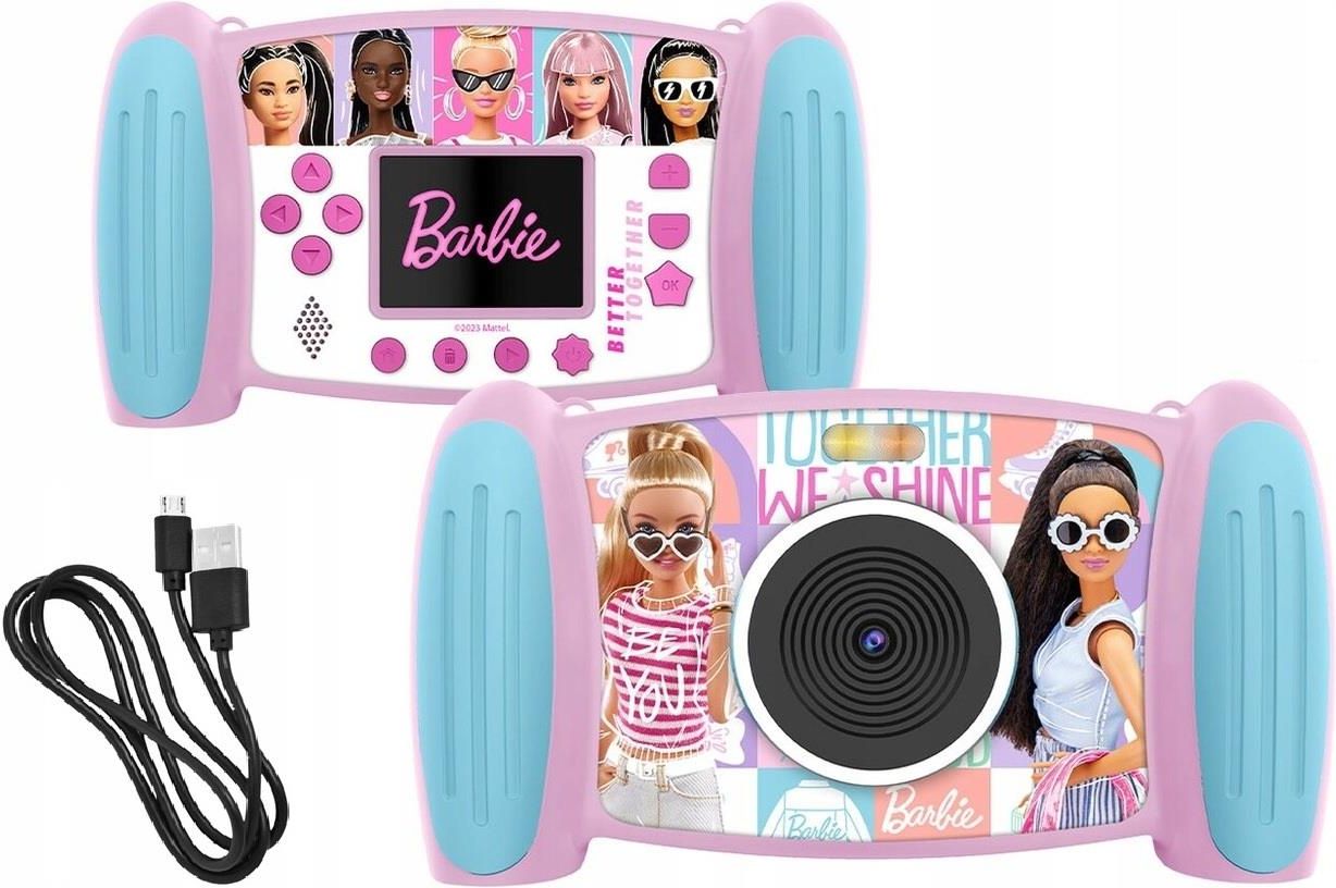 Aparat Cyfrowy 5MP + Kamera Video 1080p Barbie Kreatywność i zabawa w jednym! Interaktywny aparat Barbie to doskonałe urządzenie edukacyjne i rozrywkowe dla dzieci, które chcą rozwijać swoje umiejętności fotograficzne i filmowe w sposób zabawny i kreatywny. Dzięki wbudowanym funkcjom, dziecko może robić zdjęcia, nagrywać filmy i cieszyć się dodatkowymi efektami specjalnymi, które sprawiają, że każda chwila staje się wyjątkowa. Robi zdjęcia i nagrywa filmy - Aparat umożliwia wykonywanie zdjęć oraz nagrywanie filmów, co pozwala dzieciom uchwycić najpiękniejsze momenty. Powiększenie ZOOM 4x - Dzięki funkcji cyfrowego zoomu 4x, dziecko może przybliżyć obiekty, uzyskując lepszy detal i większą wyrazistość zdjęć. 5MP - Aparat oferuje 5-megapikselową rozdzielczość, zapewniając wysoką jakość zdjęć, które będą ostre i wyraźne. FULL HD - 1080p - Kamera umożliwia nagrywanie filmów w rozdzielczości 1080p, co zapewnia wyraźne i płynne wideo o wysokiej jakości. Zabawne filtry i grafiki - Aparat wyposażony jest w różne zabawne filtry i ramki, które pozwalają dzieciom na modyfikowanie swoich zdjęć i filmów, dodając kreatywne efekty i elementy graficzne również w trybie Live. Odtwarzacz mp3 z wbudowanym głośnikiem - Aparat wyposażony jest w funkcję odtwarzacza mp3, pozwalając dzieciom na słuchanie muzyki, co dodaje kolejny element zabawy. Zawiera kartę Micro SD - W zestawie znajduje się karta Micro SD 128MB, która umożliwia przechowywanie zdjęć, filmów oraz muzyki, zapewniając odpowiednią przestrzeń na materiały multimedialne. Wbudowana bateria akumulatorowa - Aparat wyposażony jest w wbudowaną baterię akumulatorową, którą można łatwo ładować za pomocą dołączonego do zestawu kabla. Producent: Kids Licensing Model: BB00024 Barbie Interaktywny aparat Aparat jest zaprojektowany specjalnie dla dzieci, z łatwym w obsłudze interfejsem. Ma przyjazne dla maluchów przyciski, dzięki czemu nawet najmłodsze dzieci mogą zacząć robić zdjęcia i nagrywać filmy z dźwiękiem. Intuicyjne menu - łatwość obsługi Proste, obrazkowe menu zostało zaprojektowane z myślą o najmłodszych użytkownikach. Intuicyjna nawigacja sprawia, że dziecko bez trudu opanuje obsługę aparatu, co zachęca do samodzielnego eksplorowania jego funkcji i rozwijania pasji fotograficznej. Funkcje aparatu Najważniejsze funkcje aparatu to robienie zdjęć i nagrywanie filmów, które umożliwiają dziecku uchwycenie wyjątkowych momentów w każdej sytuacji. Ramki do zdjęć W trybie LIVE dzieci mogą dodać do zdjęć jedną z 5 kolorowych ramek, które są inspirowane popularną tematyką BARBIE. Te ramki dodają wyjątkowego stylu i zabawy do wykonanych zdjęć Filtry kolorystyczne Aparat posiada opcję wyboru 1 z 6 filtrów kolorystycznych, które można zastosować zarówno do zdjęć, jak i filmów. Wśród dostępnych filtrów znajdują się sepia, czarno-białe, odcienie fioletu oraz inne, które pozwalają na nadanie zdjęciom i filmom unikalnego charakteru. Filtry efektowe Aparat oferuje dodatkowo w trybie zdjęć filtry efektowe. 10 różnych filtrów, które umożliwiają dodanie efektów takich jak rybie oko, kalejdoskop, plaster miodu i inne. Filtry te są dostępne tylko w trybie robienia zdjęć, a nie w nagrywaniu filmów. Karta pamięci Aparat wyposażony jest w kartę pamięci, co oznacza, że dziecko może od razu po włączeniu aparatu rozpocząć robienie zdjęć i filmów, bez konieczności dodatkowego przygotowania. Zdjęcia + Filmy Rozdzielczość wykonywanych zdjęć (8 rozmiarów do wyboru): 1.3MP 2MP 3MP 5MP 8MP (przez interpolację) 10MP (przez interpolację) 12MP (przez interpolację) 20MP (przez interpolację) Nagrywanie filmów w rozdzielczości (3 rozmiary do wyboru): FULL HD 1080p HD 720p VGA (640x480p) Zoom cyfrowy 4x Dzięki 4-krotnemu zoomowi cyfrowemu, młodzi fotografowie / filmowcy mogą zbliżyć odległe obiekty, odkrywając fascynujące detale świata wokół nich. To doskonała funkcja do eksplorowania przyrody czy uwieczniania ulubionych zabawek z bliska. Wbudowane gry Aparat został wyposażony w pięć wbudowanych gier ze ścieżką dźwiękową, które dostarczą dziecku dodatkowej zabawy w przerwach między sesjami fotograficznymi / filmowymi. Zawiera interaktywne gry edukacyjne, takie jak: Wąż / Piłka nożna / Labirynt / Samoloty / Dopasuj Pudełko. Odtwarzacz MP3 Wbudowany odtwarzacz MP3 pozwala na słuchanie ulubionej muzyki, co czyni go wszechstronnym urządzeniem rozrywkowym. Przeglądanie zdjęć i filmów na wyświetlaczu aparatu Użytkownik może łatwo przeglądać wykonane zdjęcia oraz nagrane filmy bezpośrednio na wyświetlaczu LCD o przekątnej 2", co pozwala na szybką ocenę swoich dzieł. Przyjazny dla ucha dźwięk Podczas zmiany ustawień i wyboru przycisków aparat emituję dźwięki przy każdej zmianie ustawienia lub wyborze przycisku. Istnieje możliwość dostosowania głośności dźwięku. Wytrzymała konstrukcja Dzięki solidnej obudowie aparat jest odporny na upadki i przypadkowe uderzenia, co sprawia, że jest idealny dla aktywnych dzieci. Specyfikacja Typ aparatu: Aparat cyfrowy Matryca: CMOS Obsługiwany format pliku: MP3 Wbudowana lampa: Tak Przekątna ekranu: 2" Rozdzielczość zdjęć: 5 MP (megapikseli) Powiększenie zoom: x4 Rozdzielczość wideo: 1080p (Full HD) Złącze: Micro USB Tryby zdjęć: Zabawne filtry i efekty specjalne Odtwarzacz muzyki: Wbudowany odtwarzacz MP3 z głośnikiem Karta pamięci: Obsługa kart pamięci MicroSD / MicroSDHC - w zestawie karta o pojemności 128MB Pamięć wbudowana: Brak Wbudowana lampa: Tak Zasilanie: Wbudowany akumulator pozwalający na długi czas ciągłej pracy Wyświetlacz: LCD do podglądu zdjęć i filmów Funkcje dodatkowe: Nagrywanie filmów, robienie zdjęć, możliwość dodawania efektów i filtrów Wbudowane gry: 5x Waga: 140 g Rozmiar: 15 x 4.5 x 8.5 cm W zestawie znajduje się Aparat Kabel ł