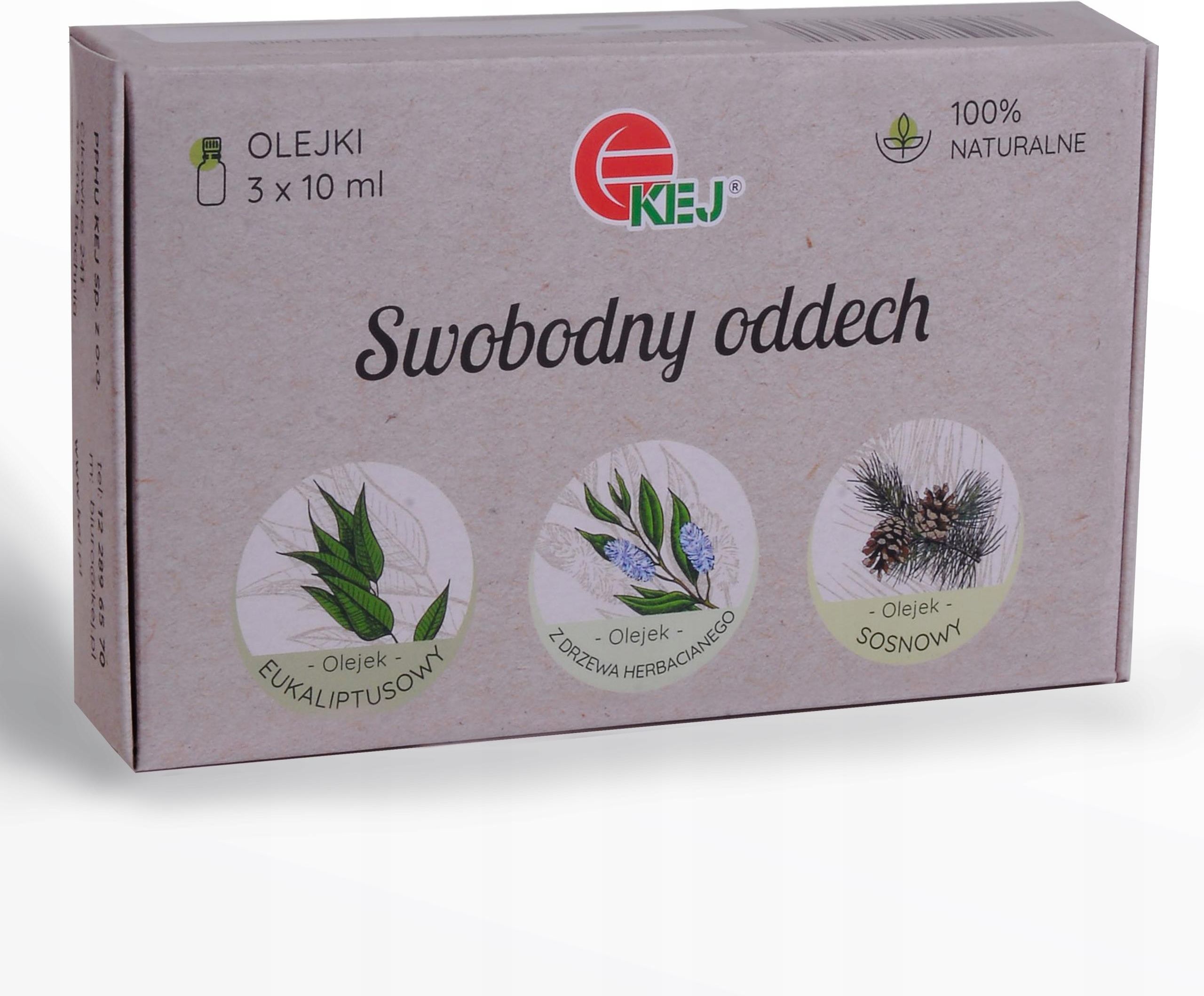 KEJ, zestaw olejków eterycznych swobodny oddech Zestaw olejków na przeziębienie Swobodny Oddech – 3 naturalne olejki eteryczne: eukaliptusowy, z drzewa herbacianego i sosnowy w ekologicznym opakowaniu Naturalna pomoc w przeziębieniu – zestaw 3 naturalnych olejków eterycznych skutecznie …
