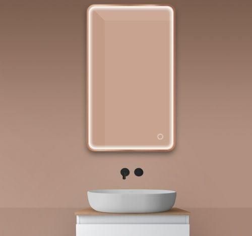 kolor: miedź szczotkowana wymiary: 60x100 cm klasa szczelności: IP67 klasa energetyczna: G możliwość powieszenia w pionie lub poziomie oświetlenie w formie paska szerokości 1,5 cm z przodu lustra- barwa światła: 6500 K Montaż z matą grzewczą Szerokość 60 cm Wysokość 100 cm Oświetlenie z …