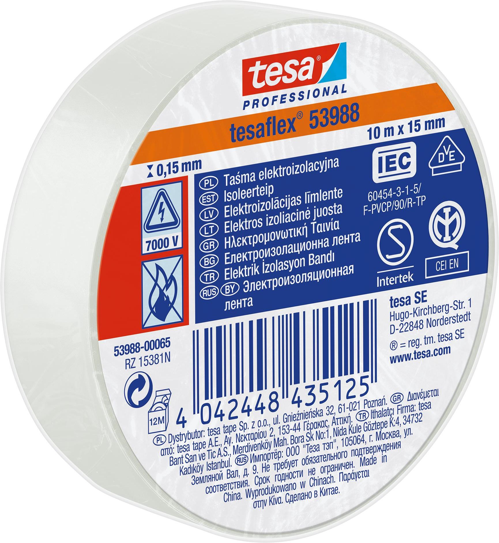 Tesa Taśma izolacyjna PVC 10m x 15mm biała Radłów