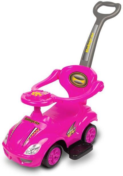 Jeździk Race Car 2 w 1 z dźwiękiem – od pchacza do jeździka (12–36 miesięcy) Rewelacyjny jeździk, pchacz Race Car to nie lada gratka dla małych kierowców. Wykonany z solidnych i wytrzymałych materiałów, zapewniających długotrwałe użytkowanie. W przypadku starszych dzieci podnóżki, barierkę i rączkę można zdemontować. Model został wyposażony w panel dźwiękowy. Jeździk pomaga rozwijać umiejętności motoryczne dziecka, a także gwarantuje dużo zabawy i radości. Specjalna "stopka" w tylnej części jeździka, stabilizuje pojazd i blokuje go przed wywróceniem się. Wymagana jest instalacja 2 baterii AA 1,5V, które nie są dołączone do zestawu. CHARAKTERYSTYKA Skrętne przednie koła Przeznaczony dla dzieci w wieku od 12 Dla dzieci o wadze do 25 kg Miejsce na skarby pod siedzeniem Imitacja liczników Model wyposażony w panel dźwiękowy Atrakcyjne kolory Wyprofilowane siedzonko, wygodne oparcie, służące również jako pchacz Trwałe i wysokiej jakości tworzywo sztuczne Długa, zdejmowana rączka do pchania pojazdu Łatwe składanie, pokazane krok po kroku w załączonej instrukcji