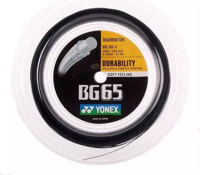 Yonex BG 65 - najpopularniejszy naciąg do badmintona na świecie. Średnica 0,70 mm i specjalne zaplecione włókna redukują ścieralność struny zapewniając, ekstremalną wytrzymałość. Idealny dla wszystkich graczy. Długość: 200 m, Grubość: 0,70 mm, Kolor: czarny.
