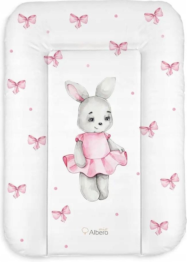 Miękka mata do przewijania niemowląt Zajączek Baletnica, Albero Mio Miękka mata do przewijania Baletnica marki Albero Mio. Miękka mata do przewijania niemowląt doskonale nadaje się do położenia na komodę i meble do przewijania. Jest lekka, przez co łatwo ją przenieść w dowolne miejsce czy zabrać ze sobą w podróż. To estetyczny i ładny produkt, który spełnia przy tym swoją najważniejszą funkcję – dba o higienę noworodka i komfort jego mamy (która bez względu na miejsce w odpowiednich warunkach przewija swoje maleństwo). Wymiar: mata – 70 x 50 cm Mata pokryta jest bezpieczną dla skóry dziecka folią, nie zawierającą ftalanów Wypełnienie: miękka, puszysta włóknina silikonowa Skład: folia PCV – poliester 100% Produkt polski