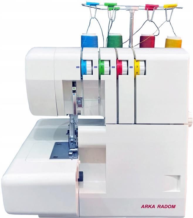 OWERLOK ARKA RADOM 700S 4-NITKOWY Prosty w obsłudze ale niezwykle funkcjonalny overlock 2/3/4 nitkowy z funkcją rolowania. OPIS Ilość nitek 2/3/4, Regulowana długość i szerokość ściegu, Wolne ramię, Stopka zatrzaskowa, Oświetlenie LED Regulowany docisk stopki, Ścieg rolujący bez konieczności zmiany płytki ściegowej, System ułatwiający nawlekanie nici, Pokrętło wyboru programu, Płynna regulacja, Ruchomy nóż górny, Wznios stopki 4.5mm, Długość ściegu 1.0-4.0mm, Szerokość ściegu 3.0-6.7mm, Dyferencjał 0.7-2.0, Moc 100W Szybkość szycia: do 1300 wkłuć/min WYPOSAŻENIE STANDARDOWE (w komplecie z maszyną) Regulator obrotów Instrukcja obsługi -w języku polskim 4 szpule z nićmi zainstalowane na owerloku wkrętak mały pinceta zestaw igieł - 2 x 90/14 rozdzielacz nici górnych pojemnik na ścinki