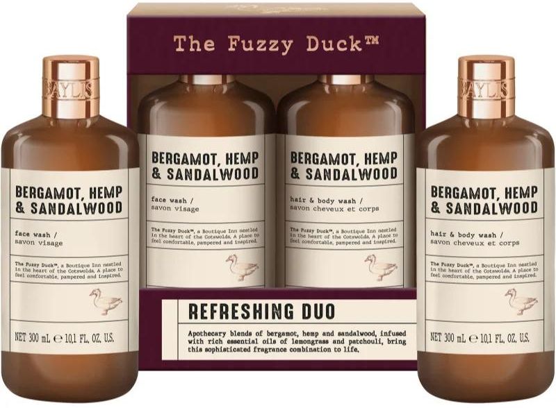 Zestaw prezentowy Baylis & Harding The Fuzzy Duck Bergamot, Hemp & Sandalwood Men's Refreshing Duo Gift SetBaylis & Harding to ceniona brytyjska marka, która od 1970 roku łączy elegancję z jakością. Z małej, rodzinnej firmy w sercu Anglii wyrosła na międzynarodową markę kosmetyczną, znaną z pięknego wzornictwa, wyjątkowych zapachów i starannego wykończenia każdego produktu. Jej zestawy prezentowe to połączenie stylu, funkcjonalności i przyjemności dla zmysłów.Zestaw z linii The Fuzzy Duck to ide