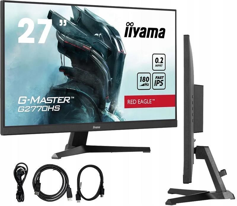 Monitor iiyama G-Master G2770HS-B1 Red Eagle 27" 1920x1080px 0,2ms 180Hz Kod produktu: G2770HS-B1 Najważniejsze cechy: Ekran 27", LED, Fast IPS Rozdzielczość 1920 x 1080 (FullHD) Matowa powłoka matrycy Technologia Adaptive-Sync Funkcje ochrony wzroku Funkcja Black Tuner Częstotliwość odświeżania: 180 Hz Czas reakcji 0,2 ms (MPRT) ZłączaDisplayPort 1.2 - 1 szt., Wyjście słuchawkowe - 1 szt., HDMI - 1 szt. Monitor stworzony dla graczy Zyskaj przewagę nad innymi za sprawą gamingowego monitora iiyama G-Master G2770HS-B1 Red Eagle. Daj wciągnąć wiernie odwzorowanym barwom oraz niezwykłej dynamice. Zyskaj również dodatkowy oręż w postaci szybkiej reakcji matrycy, co sprawi, że wyświetlany obraz będzie płynniejszy, co da Ci znacznie więcej czasu na reakcję w trakcie potyczek. Wysoka jakość obrazu Monitor iiyama G2770HS-B1 posiada matową matrycę IPS o rozdzielczości 1920 x 1080 pikseli (FHD). Matowa powłoka matrycy redukuje odblaski i refleksy świetlne. Matryca IPS zapewnia szerokie kąty widzenia, co oznacza, że obraz jest wyraźny i czytelny z różnych pozycji. Rozdzielczość FHD oferuje większą gęstość pikseli, co przekłada się na wyższą jakość obrazu, szczególnie dla profesjonalistów. To idealny monitor dla osób pracujących z arkuszami kalkulacyjnymi i z dużymi zbiorami danych, którzy potrzebują precyzyjnego i wyrazistego wyświetlania. Częstotliwość odświeżania 180 Hz, czas reakcji 0,2 ms Matryca Fast IPS nie tylko gwarantuje wierne odwzorowanie scen z pola bitwy i wyjątkową dokładność kolorów, ale także niesamowity czas reakcji na ruchomy obraz (MPRT) wynoszący 0.2 ms. Dodatkowo Dzięki częstotliwości odświeżania 180Hz i czasowi reakcji 0.2ms MPRT moc jest zawsze z Tobą! Podejmuj decyzje w ułamku sekundy i bądź pewien, że obraz wyświetlany na ekranie jest zawsze płynny i wyraźny. Funkcja Black Tuner Funkcja Black Tuner pozwala na regulowanie jasności i dostosowanie poziomu czerni do własnych preferencji. W trosce o Twój wzrok Światło niebieskie, jako część widma światła widzialnego jest czymś zupełnie naturalnym w przyrodzie, lecz naukowo udowodniono, że nadmierna ekspozycja na jego działania może powodować negatywne skutki w zdrowiu człowieka. Precyzując problemy zaczynać się mogą od suchości i pieczenia oczu aż po zwyrodnienia siatkówki i plamki żółtej. Dodatkowo monitor iiyama G2770HS-B1 posiada wbudowaną natywnie w monitor funkcję redukcji niebieskiego światła (Blue Light Reducer), która ogranicza emisję światła, które jest najbardziej niezdrowe dla oczu. Specyfikacja techniczna Przekątna ekranu: 27" Powłoka matrycy: Matowa Rodzaj matrycy: LED, Fast IPS Rozdzielczość ekranu: 1920 x 1080 (FullHD) Format ekranu: 16 : 9 Częstotliwość odświeżania: 180 Hz Wielkość plamki: 0,311 x 0,311 mm Jasność: 300 cd/m² Kontrast statyczny: 1 000:1 Kontrast dynamiczny: 80 000 000:1 Kąt widzenia w poziomie: 178 stopni Kąt widzenia w pionie: 178 stopni Czas reakcji: 0,2 ms (MPRT) Liczba kolorów: 16,7 mln Złącza: DisplayPort 1.2 - 1 szt., Wyjście słuchawkowe - 1 szt., HDMI - 1 szt. Technologie: Filtr światła niebieskiego, Adaptive-Sync, Redukcja migotania (Flicker free) Głośniki: Tak, 2 x 2W Obrotowy ekran (PIVOT): Nie Standard VESA: 100 x 100 mm Pobór mocy podczas pracy: 16 W Pobór mocy podczas spoczynku: 0,5 W Kolor: Czarny Szerokość: 613 mm Wysokość z podstawą: 438 mm Głębokość z podstawą: 192,5 mm Waga: 3,2 kg Klasa energetyczna: D Dodatkowe informacje: Regulacja kąta pochylenia (Tilt), Możliwość zabezpieczenia linką (Kensington Lock) Dołączone akcesoria: Kabel DisplayPort, Kabel HDMI, Kabel zasilający #HID:9