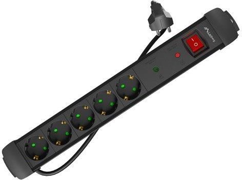 5 gniazdek z bezpiecznikiem 10 A Listwa Lanberg SP1-05F-0150-BK wykorzystuje topikowy bezpiecznik automatyczny 10 A z maksymalnym obciążeniem 2500 W i niezwykle szybkim czasem reakcji, wynoszącym tylko 10 nanosekund. Ta funkcja przeciwzwarciowa gwarantuje natychmiastową reakcję na wszelkie niebezpieczne zmiany w przepływie prądu, chroniąc Twoje urządzenia oraz sieć elektryczną przed potencjalnymi uszkodzeniami. Listwa zasilająca posiada m.in podświetlany wyłącznik bezpieczeństwa, pięć gniazd sieciowych z uziemieniem oraz wbudowane przesłony torów prądowych. Dioda LED informuje użytkownika o aktualnym stanie ochrony, co jest praktycznym dodatkiem podwyższającym funkcjonalność listwy Lanberg. Listwa antyprzepięciowa z warystorem Przy wyborze listwy zasilającej antyprzepięciowej warto zwrócić uwagę, czy jest wyposażona w mechanizmy skutecznie niwelujące przepięcia. Każda listwa przeciwprzepięciowa z warystorem cechuje się wyższym stopniem ochrony od standardowego przedłużacza, ale listwa filtrująca Lanberg SP-1 zapewnia ponadprzeciętną reakcję na skoki napięcia. Zaawansowane funkcje przeciwprzepięciowe w listwie Lanberg SP1-05F-0150-BK to wynik zastosowania trzech warystorów o łącznej absorpcji energetycznej 555 J. Dzięki temu, listwa przepięciowa SP1 skutecznie chroni przed niebezpiecznymi skokami napięcia w sieci, zabezpieczając nie jedną, a wszystkie trzy linie (G-N, G-L, N-L). Listwa przeciwprzepięciowa o wielu funkcjach Oprócz wysokiej klasy ochrony przed przepięciami i przeciwzwarciowej, listwa Lanberg SP1-05F-0150-BK oferuje także szereg praktycznych udogodnień, dostosowanych do różnych zastosowań. Zabezpieczenie gniazdek przed dziećmi to standard rynkowy, który zapewnia dodatkowe bezpieczeństwo dla najmłodszych użytkowników. Zintegrowane otwory montażowe umożliwiają łatwą instalację listwy zarówno w pozycji pionowej, jak i poziomej na ścianie lub meblach. Ponadto, przemyślana konstrukcja listwy pozwala na wygodne zwinięcie nieużywanego kabla wokół niej i wygodne podłączenie zasilaczy i innych sprzętów, unikając plątaniny przewodów.