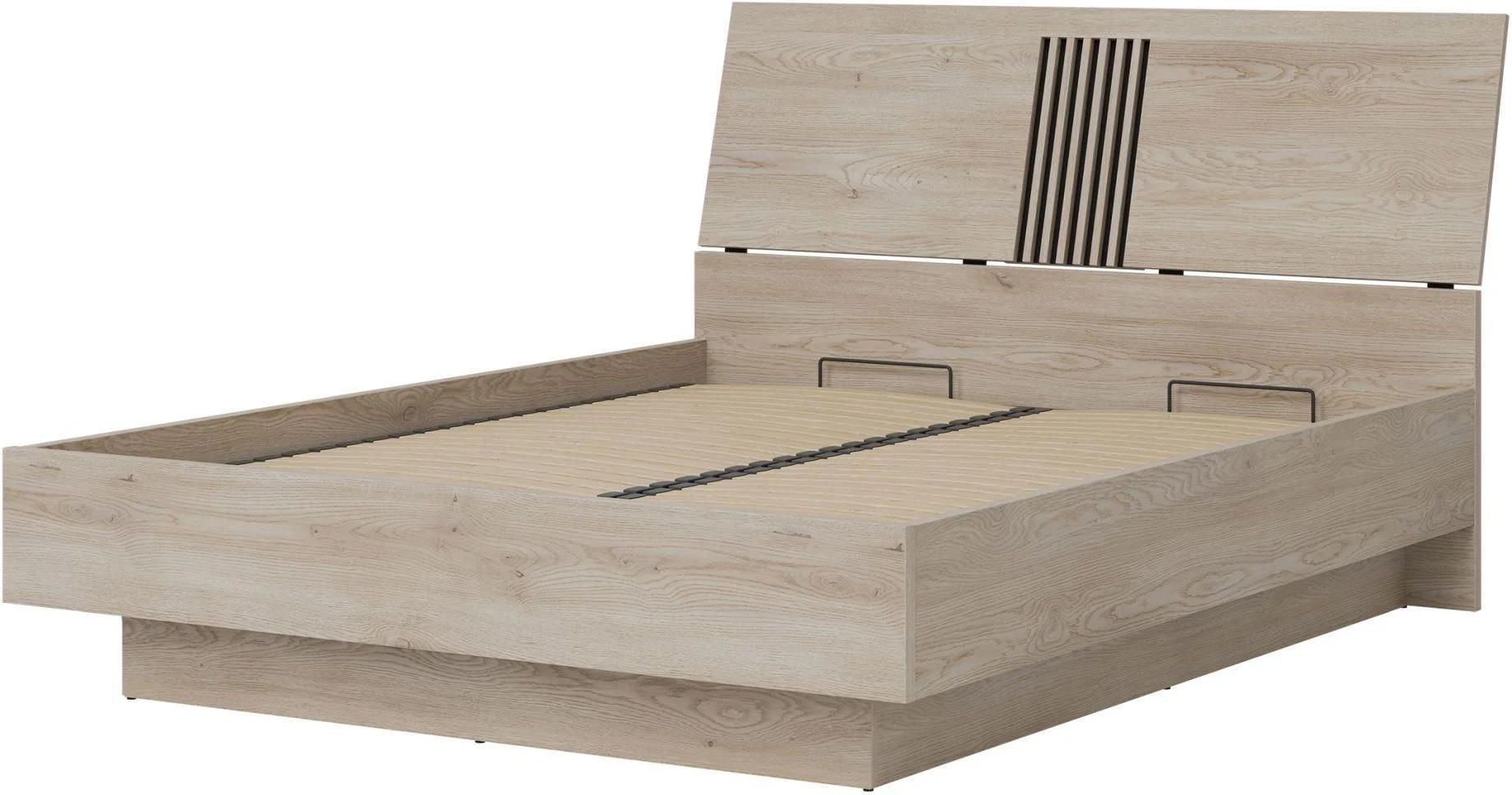 Łóżko dwuosobowe z pojemnikiem 160x200 cm Dąb Lamele Loft MATI MI18 MATI MI18 Łóżko podwójne z pojemnikiem na pościel Mati MI18 o szerokości 160 cm to świetny wybór dla osób ceniących funkcjonalność i ponadczasowe wzornictwo. Mebel oferuje komfortowe miejsce do spania, które jednocześnie pozwali na optymalne wykorzystanie przestrzeni sypialni. Bryła została osadzona na zwężonej podstawie, co doskonale wpisuje się we współczesne wnętrza, wzbogacając strefę wypoczynku pod kątem wizualnym. Mati MI18 wyróżnia wyrafinowane zestawienie kolorystyczne ciepłego dębu cremona cotta i czerni, co stanowi idealne połączenie nowoczesnego designu z klasycznym stylem. Ciekawym akcentem są pionowe żłobienia na delikatnie wyprofilowanym wezgłowiu, które dodają całości unikalnego charakteru. Każdy element łóżka zaprojektowano z myślą o tym, aby spełnić najwyższe standardy jakości, zapewnić maksymalny komfort i wrażenia estetyczne. Wysokiej jakości płyta laminowana Kolekcja Mati składa się z 19 segmentów Dodatkowym atutem jest możliwość rozszerzenia funkcjonalności łóżka poprzez opcjonalny tapicerowany panel, który może znacznie urozmaicić wygląd sypialni oraz zapewnić wygodniejsze oparcie. Wymiary Szerokość: 167 cm Długość: 218 cm Wysokość: 108 cm Powierzchnia spania: 160x200 cm Waga towaru z opakowaniem: 121,15 kg Podnoszony stelaż Łóżko wyposażone jest w pojemny schowek na pościel znajdujący się pod podnoszonym stelażem, co pozwala zaoszczędzić miejsce i utrzymać porządek w sypialni. Stelaż metalowy cechuje wyjątkowa wytrzymałość i trwałość. Gruby profil i sprężyste listwy wyprofilowane w lekki łuk to gwarancja odpowiedniego podparcia dla materaca, co przekłada się na większą wygodę podczas snu. Wykończenie Mebel został precyzyjnie wykonany z solidnej płyty wiórowej pokrytej laminatem w kolorze dąb cremona cotta z dodatkiem czarnych akcentów. Zastosowany materiał jest łatwy w pielęgnacji i utrzymaniu czystości, a także odporny na zarysowania i uszkodzenia, co gwarantuje długotrwałe użytkowanie produktu. Szczegóły produktu Nazwa kolekcji: mati Kod / symbol producenta: mi18/160s.p. Styl: nowoczesny Ilość wnęk zamkniętych: 2 Pojemnik na pościel: wewnętrzny Stelaż: metalowy Ilość listew: 48 szt Materac: brak Nóżki: ślizgacz Ilość paczek produktu: 6 Wyposażenie: instrukcja montażu / akcesoria montażowe Montaż: do samodzielnego montażu Wykonanie Szczyt górny: płyta wiórowa laminowana 16 mm / 28 mm / MDF 16 mm Bok lewy i prawy: płyta wiórowa laminowana28 mm Szczyt dolny: płyta wiórowa laminowana28 mm Podstawa korpusu: płyta wiórowa laminowana16 mm Kolorystyka Korpus: dąb cremona cotta / czarny Nóżki: czarny Galeria zdjęć