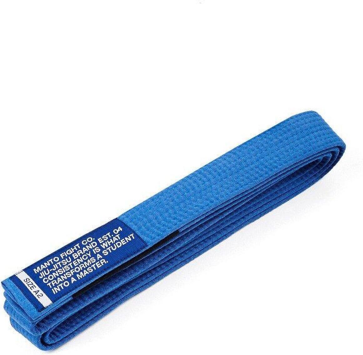 MANTO pas do BJJ MOTTO niebieski Pas do Brazylijskiego Jiu Jitsu 100% bawełna. Żakardowa naszywka Manto. Czarny panel na belki UWAGA - zdjęcie poglądowe, rzeczywisty rozmiar pasa podany jest w tytule oferty M = A1 = 270 cm L = A2 = 285 cm XL = A3 = 300 cm XXL = A4 = 315 cm