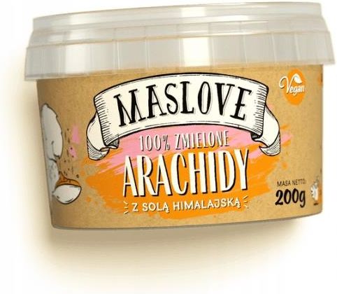 MASŁO ORZECHOWE MASLOVE 100% ZMIELONE ARACHIDY SÓL HIMALAJSKA NATURAL OPAKOWANIE 200g MASŁO ZE ZMIELONYCH ORZECHÓW ARACHIDOWYCH I SOLĄ HIMALAJSKĄ 100% Masło orzechowe to smak, który zachwyca! Wytwarzane jest z najwyższej jakości arachidów, delikatnie prażonych i zmielonych, by uzyskać aksamitną konsystencję. Dodatek soli himalajskiej, uznawanej za najczystszą, dodaje głębi i lekko słonego charakteru, idealnie komponując się z naturalną słodyczą orzechów. Ten unikalny produkt świetnie wzbogaci zarówno śniadaniowe kanapki, sałatki, naleśniki, jak i domowe desery – od lodów po wypieki. MASŁO ORZECHOWE Orzechy ziemne są bogate w wartości odżywcze: dostarczają zdrowych tłuszczów wielonienasyconych, przeciwutleniaczy i pełnowartościowego białka. Na każde 200 g masła przypada aż 50 g białka, co sprawia, że stanowi ono doskonały wybór dla osób na diecie roślinnej, sportowców oraz każdego, kto dba o zdrowe nawyki żywieniowe. To smarowidło o bogatym aromacie, przygotowywane w Polsce, stanowi doskonały wybór dla osób dbających o zdrową, świadomą dietę i poszukujących pełnowartościowych smaków. NAJWAŻNIEJSZE CECHY Wartości odżywcze na 100 g: Wartość energetyczna 2403 kj / 581 kcal Tłuszcz 46 g w tym kwasy tłuszczowe nasycone 6,1 g Węglowodany 12 g w tym cukry 6,4 g Błonnik 8,5 g Białko 26 g Sól 1,04 g DODATKOWE INFORMACJE Pojemność: 200 g Przechowywanie: Przechowywać w suchym i ciemnym miejscu w temperaturze pokojowej, przed spożyciem zaleca się wymieszanie​
