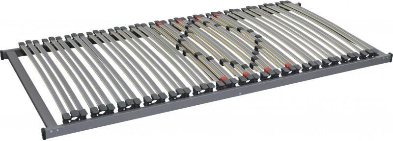 Stelaż posiada 42 listwy. Stelaż elastyczny całkowicie pokryty folią carbon. Najnowsze osiągnięcie w dopasowaniu się sylwetki. Uchwyty triple zapewniają 3razy większą elastyczność. Umieszczone nabocznej ramie stelaża ruchome gumowe uchwyty idealnie kopiują, przez co stelaż jest jeszcze bardziej elastyczność i lepiej dopasowuje do kształtów ciała. Regulacja twardości w strefie T12 sprawia, że w tym miejscu znajduje się dwanaście podwójne listwy wzmacniające oraz miejsce do samodzielnej regulacji twardości na uchwytach. Wysokość stelaża: 8 cm Szerokość listew/ilość: 25 mm/42 szt. Uchwyty: ruchome gumowe potrójne Obciążenie maksymalne: do 120 kg Zalecany typ materaca: piankowy, lateksowy, kieszonkowy