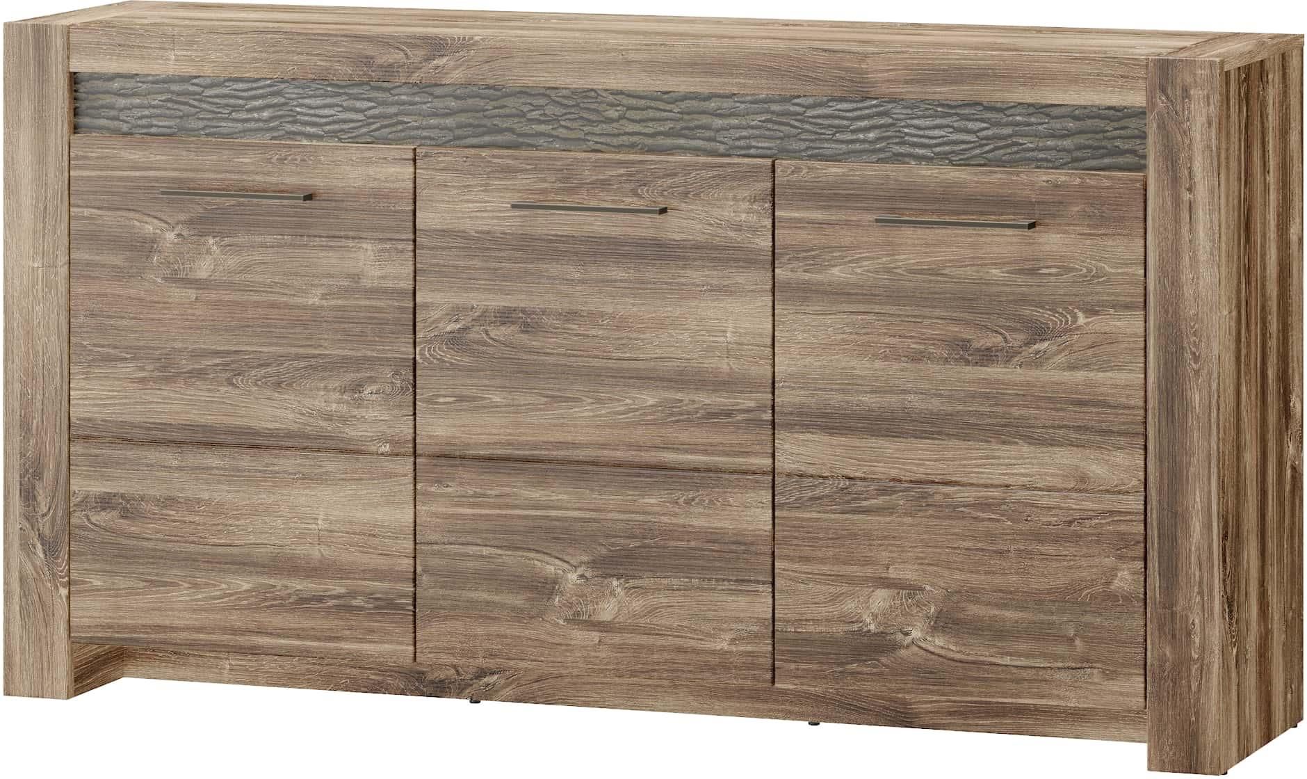 Komoda 45 Belveder Szynaka OPIS: Salon to ważne pomieszczenie w mieszkaniu, dlatego jego odpowiednie zaaranżowanie ma duże znaczenie dla wszystkich domowników. Dlatego kolekcja Belveder producenta Szynaka Meble została stworzona z myślą o umeblowaniu właśnie pokoju dziennego. To kolekcja która pokazuje, że można mieszkać i przyjmować gości w ładnym i wygodnym pokoju. Najwyższa jakość mebli w kolorze dębu stirling i ozdobne motywy kory nadają wyjątkowości takim spotkaniom. Meble z systemu Belveder charakteryzują się użyciem estetycznej płyty MDF we frontach, która nadaje estetyki meblom. Wykonane w przyjemnej kolorystyce z pewnością przypadną do gustu wszystkim, którzy cenią sobie elegancję oraz funkcjonalność. Komoda Belveder 45 to pojemny trzydrzwiowy mebel, za drzwiczkami znajdują się półki wykonane z płyty meblowej. Praktyczna komoda pomaga nie tylko zachować w czystości i porządku zbiory książek czy innych domowych przedmiotów, ale daje poczucie porządku wprowadzonego do pokoju. Pozwala schować wiele rzeczy, które są częścią życia domowego. WYMIARY: Szerokość: 158 cm Głębokość: 40 cm Wysokość 85 cm MATERIAŁY: - korpus: płyta meblowa - front: płyta meblowa + płyta MDF - uchwyty: tworzywo sztuczne KOLORYSTYKA: - korpus I front: Dąb stirling - uchwyty: metaliczne Odpowiednia aranżacja salonu sprawi, że stanie się on miejscem, w którym będziesz odpoczywał. Kolecja Belveder producenta Szynaka Meble to meble z charakterem, które dzięki nowoczesnym rozwiązaniom wprowadzą do wnętrza przytulny nastrój. Kolekcja stworzona dla tych, którzy lubią otaczać się nie tylko pięknymi, ale również funkcjonalnymi przedmiotami.