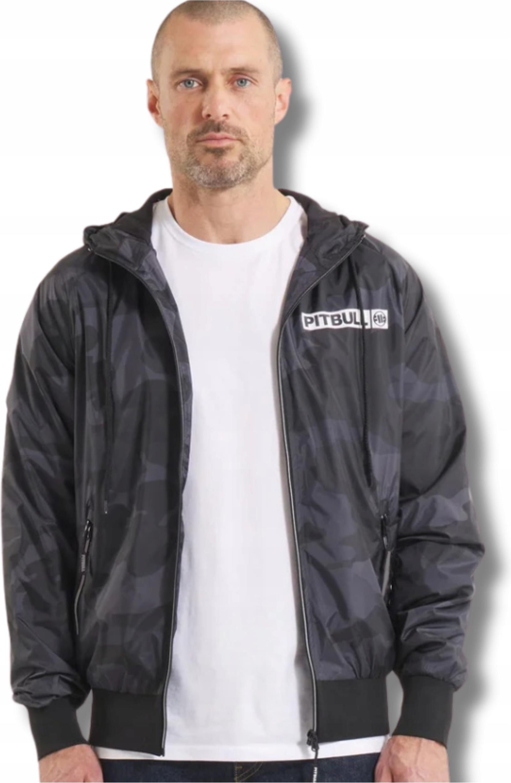 MĘSKA KURTKA PRZEJŚCIOWA PITBULL WIATRÓWKA Z KAPTUREM LOGO KIESZENIE CAMO M Radom