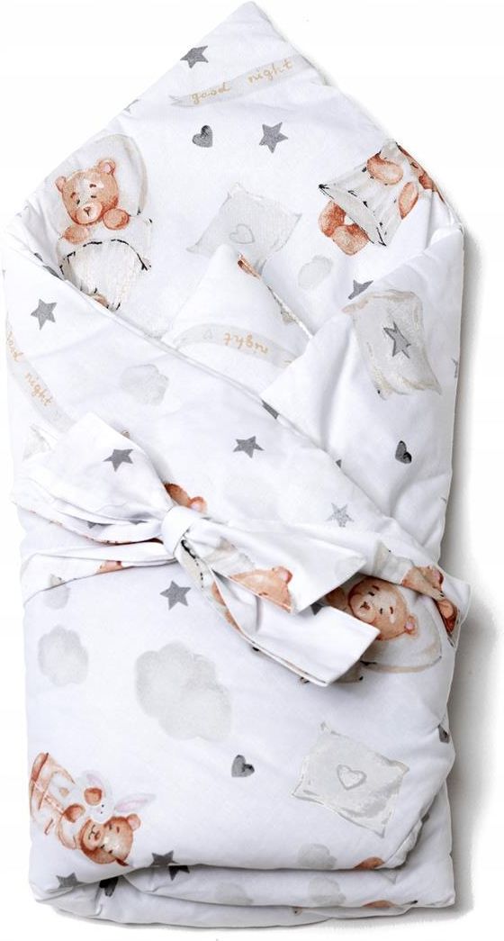 Neno Mila – rożek niemowlęcy Rożek Mila to miękki, przytulny otulacz dla noworodków i niemowląt. Zapewnia dziecku komfort oraz poczucie bezpieczeństwa, co jest szczególnie ważne w pierwszych tygodniach życia. Produkt wykonany jest z delikatnych, przyjaznych dla skóry materiałów. Neno Mila - Rożek niemowlęcy Wyprodukowane w Polsce wypełniony antyalergiczną włókniną mocne szwy szybkoschnący miękki materiał możliwość prania wiązywany i regulowany kokardą Dziecięcy design Neno Mila wyróżnia się przyjemnym, dziecięcym designem. Delikatny wzór w misie wprowadza do dziecięcej przestrzeni ciepło, i poczucie przytulności. Jasne, pastelowe kolory idealnie wpasująsię do każdego wnętrza. Hand made mocne szwy, włókno antyalergiczne, Praktyczna Rożek Neno Mila został zaprojektowany z myślą o świeżo upieczonych mamach– bez luźnych elementów, które mogłyby stanowić zagrożenie dla dziecka. Dzięki regulowanemu zapięciu rożek komfortowo dopasowuje się do ciała malucha. Można go łatwo wyprać, a szybkoschnący materiał zachowuje gładkość i sprężystość, co gwarantuje niepowtarzalną jakość każdego dnia.. Wysoka jakość Neno MIla został wykonany ręcznie w Polsce z najwyższą dbałością o szczegóły. Certyfikat Oeko-Tex Standard 100 potwierdza użycie bezpiecznych dla zdrowia dziecka materiałów, które zotały przebadane pod kątem obecności szkodliwych substancji. Rożek posiadawypełnienie z antyalergicznego włókna oraz mocne szwy zapewniające bardzo dobrą wytrzymałość. Miękki i komfortowy Neno to marka, która stawia na komfort najmłodszych. Rożek Neno Mila został wypełniony antyalergiczną włókniną, która zapewnia odpowiednią miękkość. Bawełniany materiał jest delikatny dla skóry i przyjemny w dotyku – tworzy idealne warunki dla spokojnego snu. Dane techniczne Model: Neno Mila Materiał: materiał zewnętrzny: 100% bawełna, wypełnienie: antyalergiczna włóknina Pranie materiału: 30°C Wymiary: 75×75×(+/–3) cm Waga: 237 g