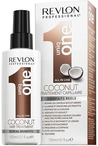 Revlon, Uniq One, All in One Coconut, kuracja do włosów 10w1, 150 ml Pielęgnacji nigdy dość, jeśli chodzi o Twoje włosy. Kuracja do włosów Revlon Professional Uniq One ​​All In One Coconut o kuszącym aromacie kokosa zapewnia uzyskanie pięknej fryzury na 10 sposobów. Pomoże Ci zregenerować suche, …