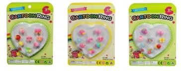 8 sztuk kolorowych pierścionków dla dziewczynek. Pierścionki są regulowane więc bez problemu zmiejszczą się na palce niejednej pięknej małej damy. Pierścionki mają kształt kwiatków, motylków, owoców, kokardek itp. Pierścionki zapakowane sa w kartonową podstawkę z przezroczystym kloszem. Podane wymiary są wymiarami opakowania. Produkt występuje w kilku wersjach kolorystycznych, wybierany losowo. Cena dotyczy jednej sztuki.