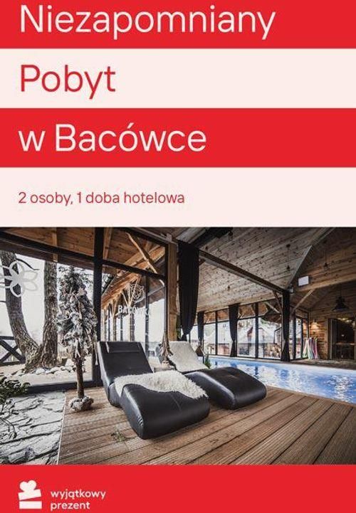 Uwaga! muve.pl jest pośrednikiem w dystrybucji i nie ma podstawy prawnej do wystawienia faktury VAT na ten produkt. O Wyjątkowym Prezencie Wyjątkowy Prezent to pierwsza w Polsce firma, oferująca prezenty w formie niezwykłych przeżyć, które można wręczyć każdemu i na każdą okazję. W ofercie znajduje się wiele tysięcy pomysłów na prezent, możliwych do zrealizowania na terenie całej Polski. Voucher umożliwia skorzystanie z konkretnej atrakcji, opisanej poniżej. Wyjątkowy Prezent – spełnianie marzeń jest proste! Niezapomniany Pobyt w Bacówce Odpocznijcie w ekskluzywnym miejscu! LOKALIZACJA Radawa PRODUKT ZAWIERA Nocleg w komfortowym pokoju lub domku; śniadanie; nieograniczony dostęp do siłowni; nieograniczony dostęp do strefy relaksu z basenem, sauną, jacuzzi, strefą wypoczynkową, grotą solną oraz zewnętrzną balią z gorącą wodą. WAŻNE INFORMACJE Przeżycie przeznaczone jest dla dwóch osób. Doba hotelowa od 15:00 do 11:00. Do dyspozycji gości jest parking monitorowany (płatny – 20zł/doba). Prezent można realizować przez cały rok z wyłączeniem wakacji, długich oraz świątecznych weekendów wyznaczonych przez hotel. W przypadku pobytu z dziećmi występuje dodatkowa opłata. W przypadku przyjazdu ze zwierzęciem występuje dodatkowa opłata. Jak skorzystać z Prezentu? 1. Aktywuj Wejdź na: www.wyjatkowyprezent.pl/rezerwacje/ i aktywuj swój Produkt. 2. Wybierz Wybierz przeżycie z listy dostępnych do realizacji z tym Produktem. 3. Zarezerwuj Przygotuj się do realizacji przeżycia zgodnie z informacjami zawartymi na Produkcie oraz otrzymanymi w procesie rezerwacji. 4. Przeżyj to Zabierz ze sobą Voucher i baw się dobrze, spełniając swoje niezapomniane przeżycie. Nie zapomnij podzielić się wrażeniami: facebook.pl/wyjatkowyprezentinstagram.com/wyjatkowyprezenttiktok.com/@wyjatkowyprezent#tyleprzezyc, #wyjatkowyprezent Kontakt: (22) 66 88 272mam@wyjatkowyprezent.plwww.wyjatkowyprezent.pl Zakup jest równoznaczny z akceptacją regulaminu znajdującego się na: wyjatkowyprezent.pl/regulamin. Termin ważności Vouchera, regulamin oraz pozostałe informacje znajdziesz na: wyjatkowyprezent.pl/rezerwacje Gwarantujemy możliwość realizacji wskazanego przeżycia przez 12 miesięcy od dnia zakupu. Po tym terminie wpłacone środki przechodzą na Kartę Podarunkową, którą przez kolejne 24 miesiące można wykorzystać na dowolnie wybrany produkt z aktualnej oferty. Szczegóły na wyjatkowyprezent.pl/regulamin.
