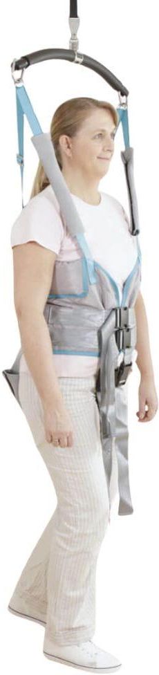 Udoskonalona konstrukcja dla optymalnego wsparcia Podwieszka półpełna WALKING została skrupulatnie zaprojektowana, by zwiększyć bezpieczeństwo i wsparcie użytkowników w czasie ćwiczeń rehabilitacyjnych. Precyzyjna regulacja wokół tułowia oraz pasów przy nogach i ramionach umożliwia idealne dopasowanie, zapewniając stabilność i komfort. Dostosowanie do indywidualnych potrzeb użytkownika Elastyczność regulacji różnych elementów podwieszki umożliwia dostosowanie do różnorodnych potrzeb i gabarytów ciała, co zapewnia efektywne wsparcie i bezpieczeństwo podczas treningu chodu i wstawania. Wsparcie w ćwiczeniach chodzenia i pionizacji Podwieszka półpełna WALKING jest specjalnie zaprojektowana dla osób, które potrzebują wsparcia w treningu chodu lub wstawania, a także współpracuje z Ergo Trainerem lub podnośnikami stacjonarnymi. Jej konstrukcja nie tylko zwiększa bezpieczeństwo, ale również przyczynia się do utrzymania odpowiedniej postawy podczas ćwiczeń. Jest to kluczowe dla użytkowników, którzy chcą poprawić swoją ruchliwość lub utrzymać aktywność fizyczną. Podwieszka ułatwia ćwiczenia, dając pewność stabilizacji i poprawnego ułożenia ciała, co jest szczególnie ważne przy treningu pionizacji oraz chodu. Wytrzymałość i praktyczność materiału Podwieszka półpełna WALKING, wykonana z wytrzymałego poliestru, charakteryzuje się odpornością na zużycie oraz łatwością w utrzymaniu. Poliester jest materiałem, który wykazuje dużą trwałość, co jest kluczowe przy częstym użytkowaniu w różnych warunkach. Podwieszka może być prana w temperaturze do 85°C, co jest niezwykle ważne w kontekście utrzymania higieny, zwłaszcza w placówkach medycznych i opiekuńczych. Ta cecha materiału zapewnia, że podwieszka pozostaje higieniczna i estetyczna nawet przy intensywnym użytkowaniu, co przyczynia się do długotrwałej funkcjonalności produktu. Specyfikacja: Maksymalne obciążenie: 180 kg Typ: Podwieszka do chodzenia Materiał: Poliester Temperatura prania: 85°C Dostępne rozmiary: od XXS do XL Podwieszka została zaprojektowana tak, aby była kompatybilna z podnośnikami firmy Antano Group.