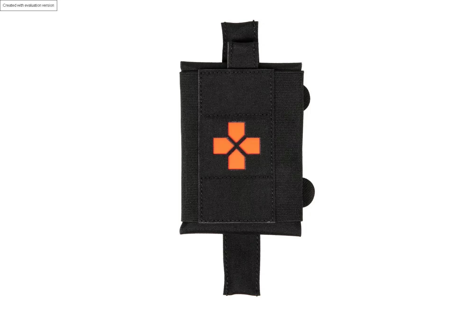 Mini Apteczka Tornis Cechy apteczki - Wykonana z lekkiego i wytrzymałego materiału Aspen 500D, - montaż w systemie Molle/PALS, - wyjmowany wkład zapinany na rzep, z elastycznymi organizerami, - pogrubione i wzmocnione uchwyty dla szybszego wyjęcia zawartości, - elastyczne boki dopasowują się do ilości przedmiotów w apteczce, - dwustronna wkładka identyfikacyjna: czerwona/odblaskowa
