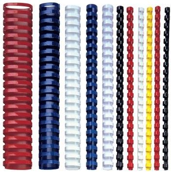 Grzbiety plastikowe – standardowe opakowania Szeroka gama kolorowych grzbietów ułatwia identyfikację oprawianych dokumentów. Zróżnicowane średnice grzbietów pozwalają na ich właściwe dobranie do ilości kartek. Opakowanie: 50 szt. Dostępne w kolorach: białym, żółtym, czerwonym, zielonym, niebieskim oraz czarnym.