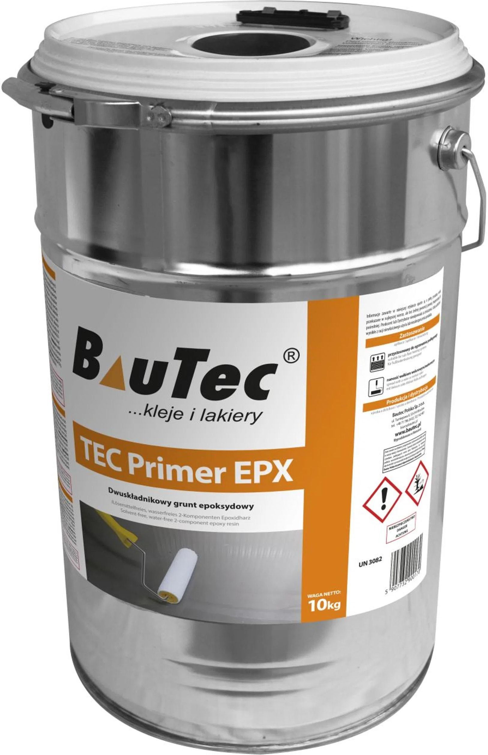Grunt epoksydowy - TEC PRIMER EPX 10kg - BauTec do porowatych i bitumicznych podłoży do posadzek silnie obciążonych odcina wilgoć w podłożu do 6 % CM pod masy, kleje polimerowe i poliuretanowe. nie zawiera rozpuszczalnika, grunt o emisji EC 1 zapewnia wysoką przyczepność przystosowany do ogrzewania …