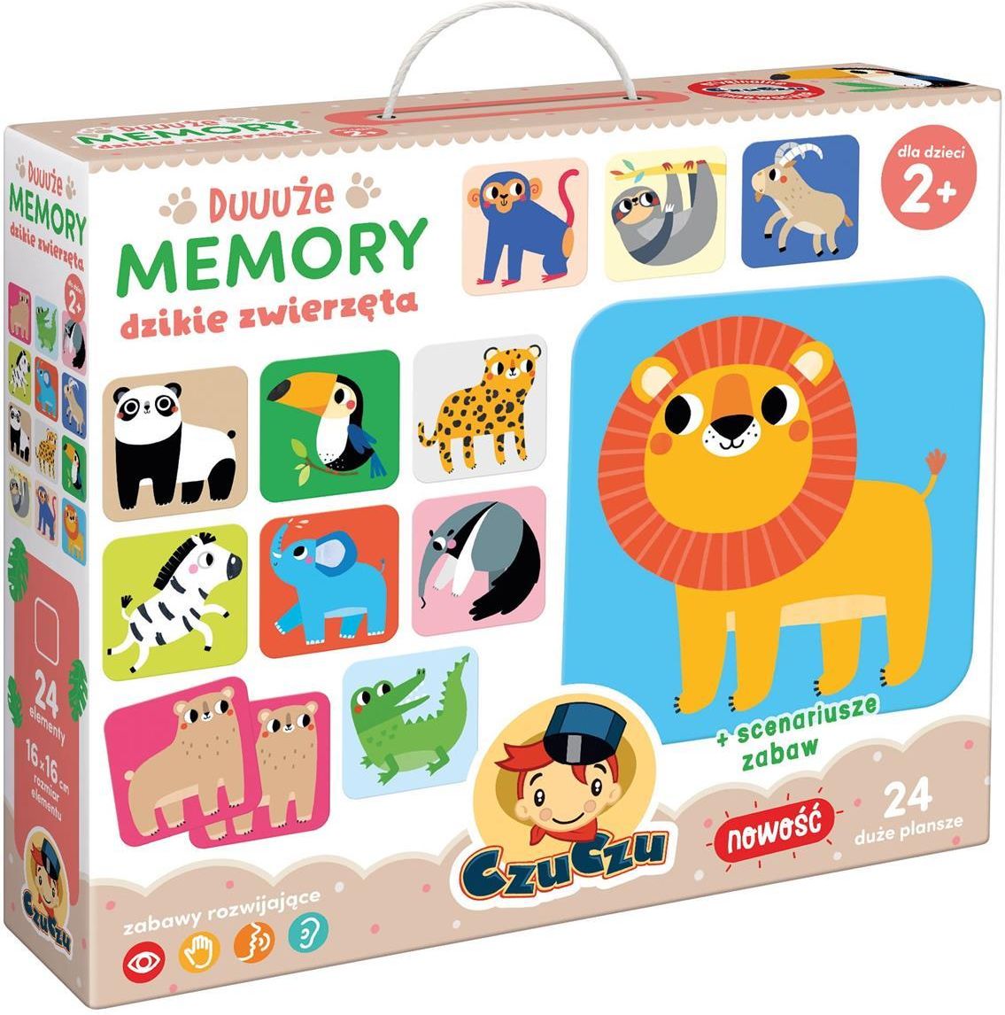 Duuuże memory Dzikie zwierzętaDzikie zwierzęta z różnych zakątków świata zapraszają do wspólnej zabawy. Edukacyjny zestaw zawiera 24 duże i trwałe elementy. Znakomicie sprawdzi się jako pierwsza prosta gra pamięciowa. Zestaw zawiera 24 elementy (12 par) i scenariusze zabaw Prezentowe pudełko o …