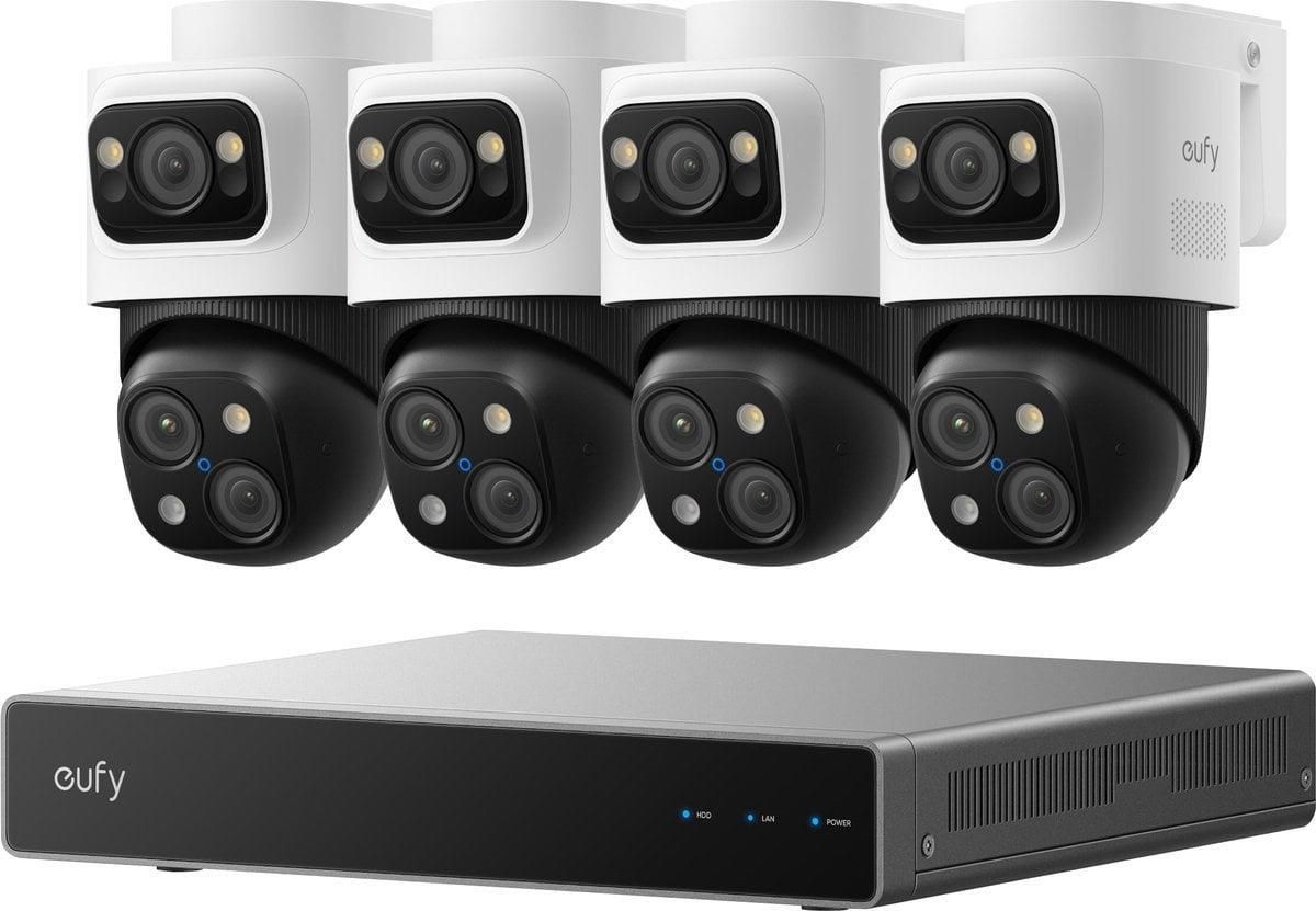- 16-megapikselowa kamera typu bullet-PTZ z potrójnym obiektywem: Górna kamera szerokokątna 4K zapewnia stały podgląd całego obrazu o kącie 122°, natomiast dolna kamera PTZ 2K jest wyposażona w automatyczny zoom 8× i funkcję obrotu 360°, co zapewnia pełny zasięg. - Automatyczne kadrowanie i grupowe śledzenie: Gdy kamera typu bullet wykryje obiekt, PTZ blokuje go i automatycznie śledzi, zapewniając ostre, centralne zbliżenia z odległości nawet 164 stóp. Funkcja automatycznego zoomu utrzymuje ruchome obiekty w kadrze, aż do momentu ich zniknięcia z pola widzenia. - Śledzenie na żywo wielu kamer: Wszystkie kamery pracują synchronicznie, aby śledzić ruch w czasie rzeczywistym. Gdy jedna kamera osiągnie limit swoich możliwości, druga natychmiast przejmuje kontrolę, zapewniając ciągły, nieprzerwany obraz — wszystko pod Twoją kontrolą. - Lokalny agent AI: Skorzystaj z proaktywnego zabezpieczenia w czasie rzeczywistym dzięki naszemu lokalnemu agentowi AI, zasilanemu przez 6T/8-rdzeniowy procesor, który umożliwia natychmiastową analizę, rzeczywistą identyfikację zagrożeń i podejmowanie zdecydowanych działań. Dostosuj strefy zamknięte i alerty, umożliwiając sztucznej inteligencji dokładne wykrywanie prawdziwych zagrożeń i odpowiednie reakcje. - Bezpłatne, inteligentne wyszukiwanie wideo: Zamiast przeglądać wszystkie swoje filmy, możesz błyskawicznie znaleźć to, czego szukasz, wyszukując słowa kluczowe. - IP65 i komunikacja dwukierunkowa: Odporny na wszelkie warunki pogodowe, z wysoką wodoszczelnością IP65, co umożliwia niezawodny monitoring. Redukcja szumów za pomocą sztucznej inteligencji filtruje hałas w tle, umożliwiając krystalicznie czystą, wolną od zakłóceń dwukierunkową komunikację. - Rozszerzalne zabezpieczenia, łatwa konfiguracja: 8-kanałowy monitoring z możliwością łatwej rozbudowy do 16. Zawiera fabrycznie zainstalowany dysk twardy 2 TB (z możliwością rozbudowy do 16 TB) umożliwiający nagrywanie 24 godziny na dobę, 7 dni w tygodniu. Dzięki zastosowaniu podłącz i używaj jeden kabel PoE do zasilania i przesyłania obrazu, umożliwia to bezproblemową integrację kamery eufy z inteligentnym asystentem.