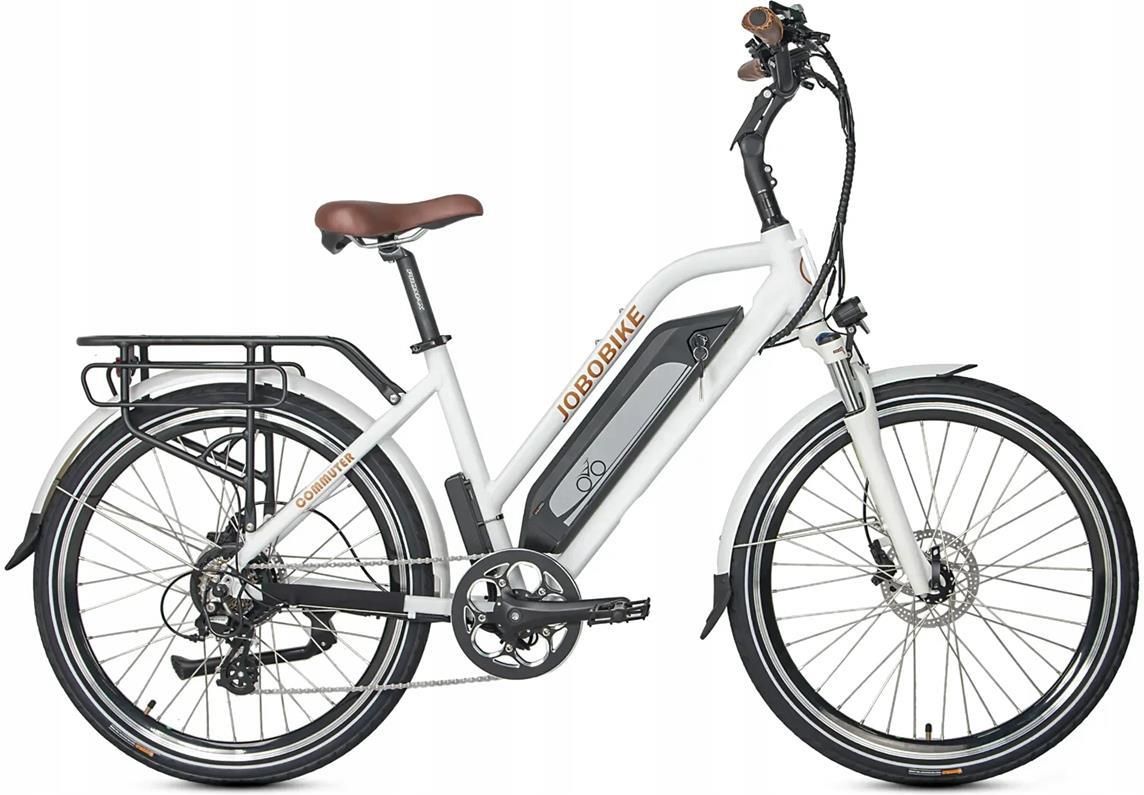 ROWER ELEKTRYCZNY MOTOROWER JOBOBIKE COMMUTER C NIEBIESKI 250W KOŁO 26" Commuter- Miejski Rower Elektryczny. Commuter to nowo zaprojektowany, miejski rower elektryczny od JOBOBIKE. Posiada elegancką ramą typu „step thru”, nowy, pojemny akumulator firmy Samsung, zestaw hydraulicznych hamulców tarczowych, zapewniających bezpieczną i komfortową jazdę oraz 7-biegową przerzutkę Shimano. Dodatkowo, pięć poziomów wspomagania jazdy wesprze rowerzystę poruszającego się zarówno po miejskich ulicach, jak i bardziej wymagających trasach. Zaawansowana technologia i wysoki komfort. Model Commuter wyposażony jest w pojemny akumulator Samsung 36V 18.2AH (655Wh), który umożliwia osiągnięcie dystansu do 120 km w trybie wspomagania. Hydrauliczne hamulce tarczowe Tektro Comfort zapewniają pewne i precyzyjne hamowanie, a 7-biegowa przerzutka Shimano pozwala na optymalne dopasowanie wysiłku do warunków jazdy. Dodatkowo, hydrauliczny amortyzator, skórzane uchwyty oraz komfortowe siodełko zwiększają stabilność i wygodę podczas codziennego użytkowania. Wydajność w eleganckim wydaniu. Rama wykonana z aluminium Stop 6061 o klasycznym kroju „step thru” nie tylko podkreśla estetykę roweru, ale również gwarantuje trwałość i lekkość konstrukcji. Nowoczesny, kolorowy wyświetlacz LCD z portem USB dostarcza niezbędnych informacji – poziom naładowania baterii, tryb wspomagania, moc napędu i inne – dzięki czemu masz pełną kontrolę nad swoją jazdą. Specyfikacja Bateria: 36V 18.2Ah(655Wh)Samsung Li-ion Rama: Stop 6061, aluminium Silnik: 36V 250W, max 45 N.m Kierownica: Stop aluminium, 645 mm Wyświetlacz: Kolorowy LCD z portem USB Siodełko: Velo, Komfortowe, skóra syntetyczna, brązowe Ładowarka: AC180-240V DC36V 3.0A Nóżka: Pojedyncza, stop aluminium Oświetlenie przednie: LED z reflektorem Pedały: Wellgo, typ górski Oświetlenie tylne: LED Sztyca podsiodłowa: Promax SP-252 Błotniki: PVC, czarne/białe Manetka: Standardowa Opony: KENDA czarne 26” × 1.95" Wolnobieg: Shimano, 7-biegowy Przedni widelec: SR-NEX-26”, aluminium, amortyzacja hydrauliczna Układ sterujący: 36V 250W Łańcuch: KMC C8NP/NP Korba: Aluminiowa 48T Zasięg: ≥90 km (Dane z laboratorium Jobobike. Zasięg może być różny w zależności od warunków terenowych oraz intensywności korzystania z trybu wspomagania jazdy) Zalecana wysokość rowerzysty: ≥160 cm Hamulce: Hydrauliczne hamulce tarczowe, Tektro Comfort Całkowita ładowność: 120 kg Dźwignie hamulców: Tektro Comfort Amortyzatory: Brak Tarcze hamulcowe: 160 mm, przód i tył Waga (N.W): 31.1 kg Waga całkowita: 35.5 kg Cechy charakterystyczne: Niska rama / zwiększony zasięg Zalecane użycie: Codzienna komunikacja / strefa miejska Typ roweru: Miejski rower elektryczny typu Step-thru Funkcjonalność i dodatkowe udogodnienia Hydrauliczne hamulce tarczowe: Szybka reakcja na nacisk gwarantuje bezpieczne hamowanie w każdych warunkach. Hydrauliczny amortyzator: Doskonale niweluje nierówności drogi, podnosząc komfort jazdy. Wodoodporne okablowanie: Zwiększa trwałość roweru i ułatwia utrzymanie go w czystości. Praktyczny koszyk: Intuicyjna konfiguracja koszyka z przodu umożliwia bezpieczne przewożenie zakupów lub drobnych przedmiotów. Gratisowy zestaw akcesoriów: Specjalne zestawy zapewniające szczęśliwą i wygodną jazdę. Stabilniejsza i Wygodniejsza JOBOBIKE Commuter jest wyposażony w skórzane uchwyty oraz siodełko, co sprawia, że jazda jest stabilniejsza i wygodniejsza. Co więcej, Commuter został zaprojektowany z klasyczną i elegancką ramą typu „step thru”, co czyni go wygodnym do wsiadania dla osób o różnym wzroście. Różnorodne Funkcje JOBOBIKE Commuter posiada różnorodne funkcje oraz udogodnienia. Dodatkowo konfiguracja koszyka z przodu jest bardzo prosta i intuicyjna co pozwala na swobodną i bezpiecznego jazdę, kiedy np. wracamy z zakupów. HYDRAULICZNE HAMULCE TARCZOWE Model Commuter jest wyposażony w hydrauliczne hamulce tarczowe, które ze względu na swoją konstrukcję, reagują szybciej na nacisk co zapewnia większe bezpieczeństwo rowerzysty podczas jazdy. WYŚWIETLACZ LCD Wysokokontrastowy wyświetlacz LCD, wskazującym poziom naładowania baterii, miernik mocy, poziom wspomagania i więcej, z port USB.